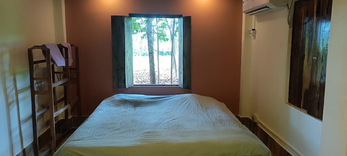 Um novo bangalô completo de dois andares em um complexo murado com gramados e plantas bem cuidados, lagoa, segurança 24x7, backup de energia, wi-fi gratuito, vaga de estacionamento segura, pistas de corrida / caminhada. Tudo isso ao lado de uma aldeia tribal e campos abertos. Apenas um conjunto de hóspedes é acomodado a qualquer momento, independentemente do número de hóspedes reservados (máx. 6). Grupo de hóspedes de membros masculinos apenas não é aceito. Somos amigáveis com casais. Na rodovia estadual, o transporte (ônibus, toto) está facilmente disponível