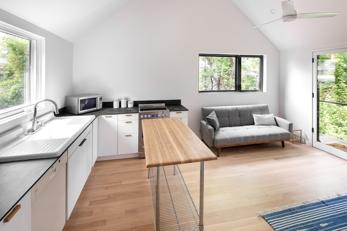 Aproveite sua estadia nesta elegante joia do quintal! Este projeto de paixão de dois arquitetos locais oferece uma estadia confortável em um pacote compacto. Esta casa de hóspedes é uma unidade de um quarto e um banheiro com uma cozinha completa com acabamentos de luxo. Caminhe até tudo! Localizado a menos de 1,6 km do centro de Durham, você estará a um salto de vários restaurantes, cafés, cervejarias e muito mais.