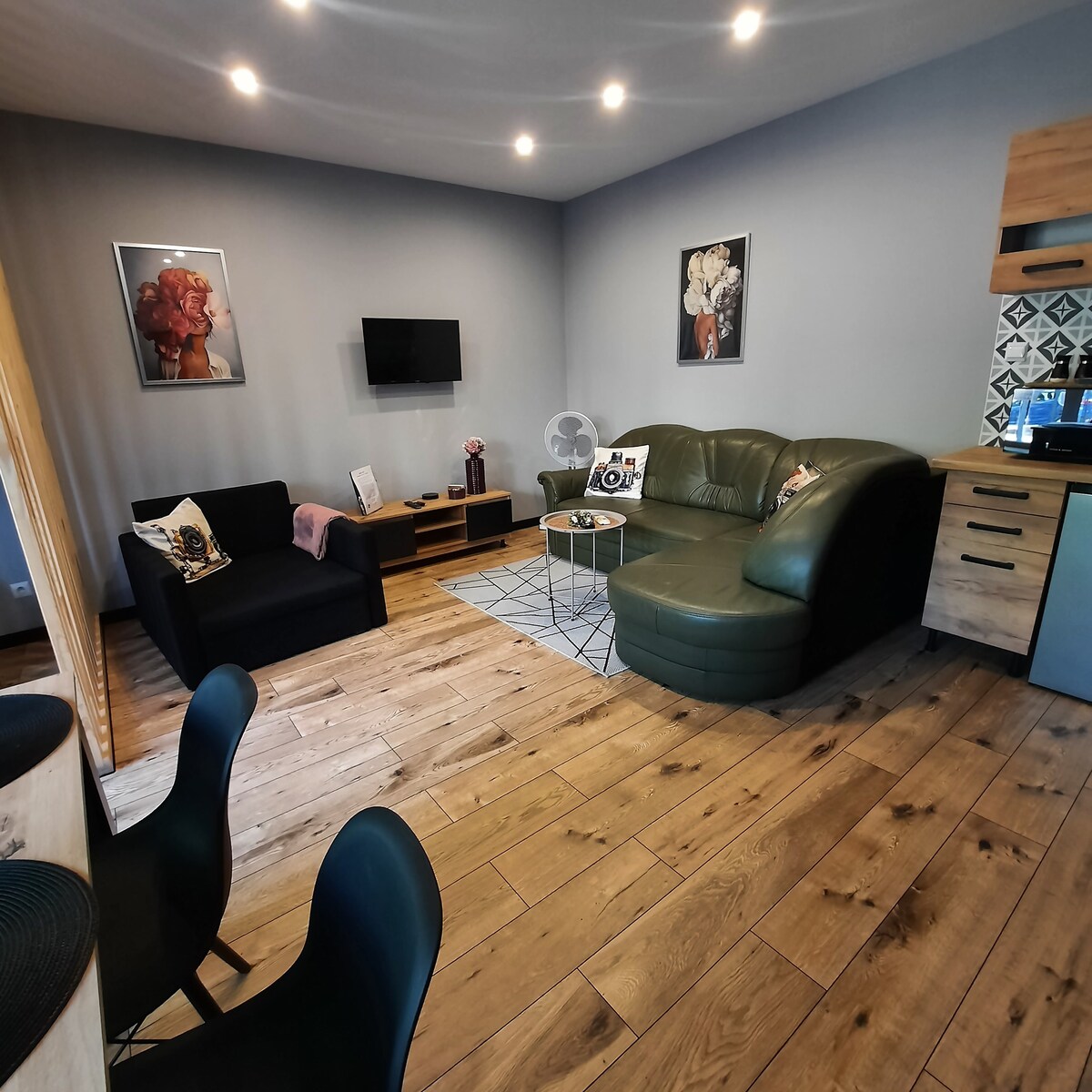 Komfortowy dwu osobowy apartament w samym centrum zabytkowego rynku Dusznik-Zdroju. Salon z jadalnia i duża przestronna w pełni wyposażona kuchnią. Świetna lokalizacja! W pobliżu sklepy, piekarnia, kawiarnia, restauracja oraz komunikacja autobusowa i kolejowa. Dwa bezpłatne miejskie parkingi. Idealne miejsce dla osób aktywnych.