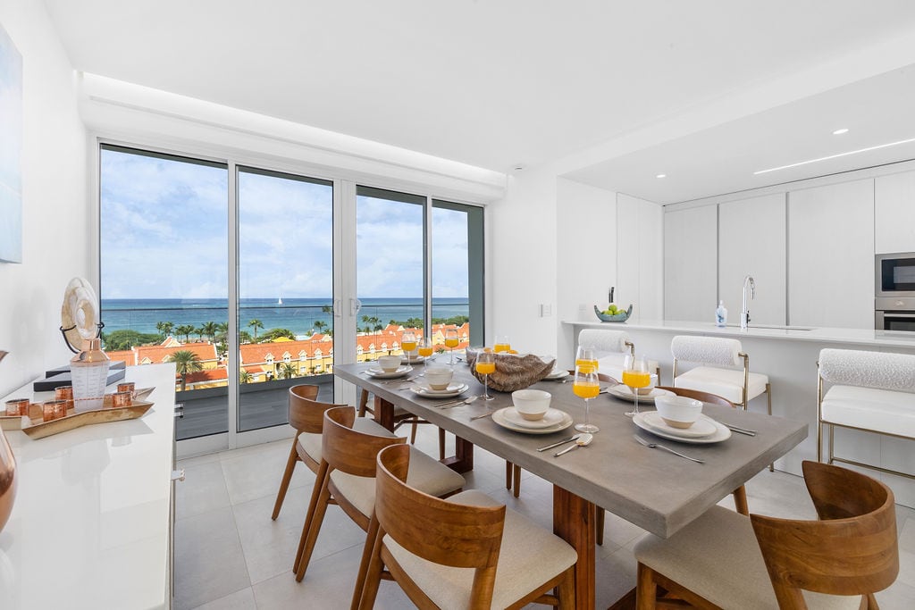 Lindo apartamento com vista para o mar no 6º andar do novo e privado Azure Residencies. Design inspirado em vida ecológica. Localizado na praia mais bonita de Aruba - Eagle Beach. Vista espetacular do oceano a partir da sala de estar, quarto principal e uma varanda espaçosa. As Residências Azure dispõem de duas piscinas de borda infinita, jacuzzi, salas de jogos, restaurante, lojas, academia totalmente equipada e um concierge para ajudar com a sua estadia. A 5 minutos a pé da Praia Eagle e a 10 minutos a pé da Praia Palm. Pura magia!