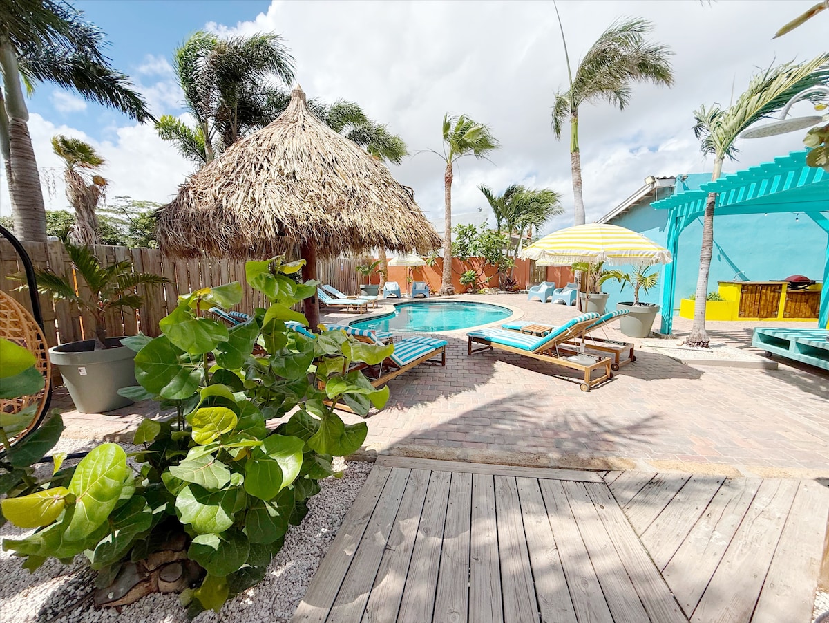 Fuja para a nossa vila mediterrânea e desfrute das areias brancas de Aruba, a ilha feliz, fique no apartamento de luxo com os melhores confortos de uma casa caribenha, localizada mesmo na área da piscina. A MELHOR LOCALIZAÇÃO *Palm Beach 400 metros a pé *Noord Supermarket 350 metros a pé * Área de restaurantes a 4 minutos de carro *A apenas 4 minutos de carro da área de restaurantes, boates, ares e compras. ~AS CRIANÇAS SÃO BEM-VINDAS.
