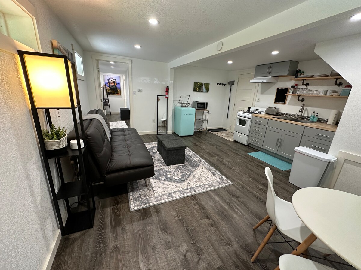 ▶︎Apartamento moderno lindamente remodelado com 2 camas/1 banheiro ▶︎ Escondido no bairro tranquilo/seguro de Turnagain ▶︎5 minutos do aeroporto ▶︎8 minutos a pé do histórico Earthquake Park e vistas deslumbrantes da Coastal Trail ▶︎10 minutos de carro do centro da cidade ▶Máquina de lavar + secar roupa gratuita no local ▶︎Estacionamento gratuito para 2 carros ▶︎Ótimos restaurantes e mercearias nas proximidades ▶Cozinha totalmente abastecida com todos os itens básicos ▶Café Keurig + chá variado para começar bem a aventura de cada dia! ▶Wi-Fi rápido e Smart TV 4K de 55" ▶Camas confortáveis