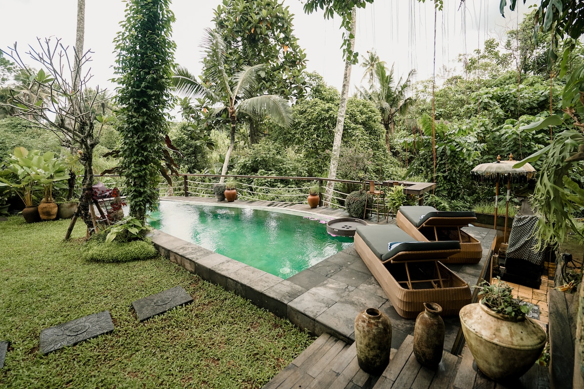 Acorde com o corpo restaurado, a mente reequilibrada, e um eu suavemente renovado— Como se a própria selva tivesse redefinido algo no seu íntimo. O canto dos pássaros, um rio que flui, flores tropicais delicadas, e coqueiros ao seu redor. A selva desperta seus sentidos em uma harmonia tranquila. À medida que a noite liberta o que você não precisa mais, Você se levanta mais leve, com os pés no chão e íntegro(a) — tocado por uma doce sensação de romance. Uma vila privativa à beira-rio, a poucos minutos de cafés e restaurantes. Um refúgio requintado em meio à beleza natural de Bali.