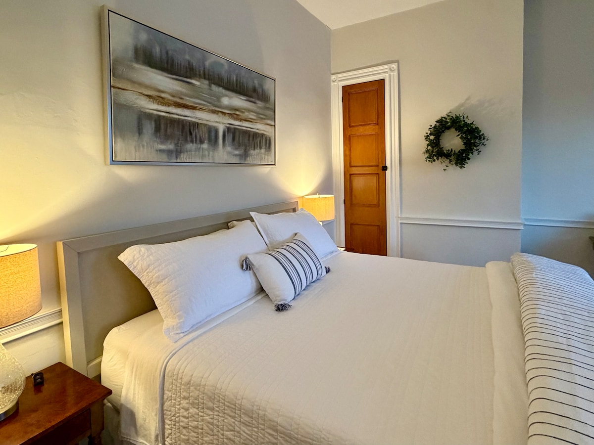 Aproveite sua estadia neste apartamento recém-remodelado em um edifício histórico ao longo da beira do rio no centro de Harrisburg. O estacionamento está incluído, a poucos passos da sua entrada privativa. Este apartamento de 1 quarto, 1,5 banheiro apresenta mobiliário elegante; uma cozinha gourmet com conjunto de eletrodomésticos Samsung e bar de mármore para refeições; TV inteligente, espaço de trabalho dedicado, lavabo, banheiro completo totalmente revestido de azulejos e máquina de lavar e secar roupa na unidade. Charme histórico com todas as comodidades modernas, a poucos passos de tudo no centro da cidade!