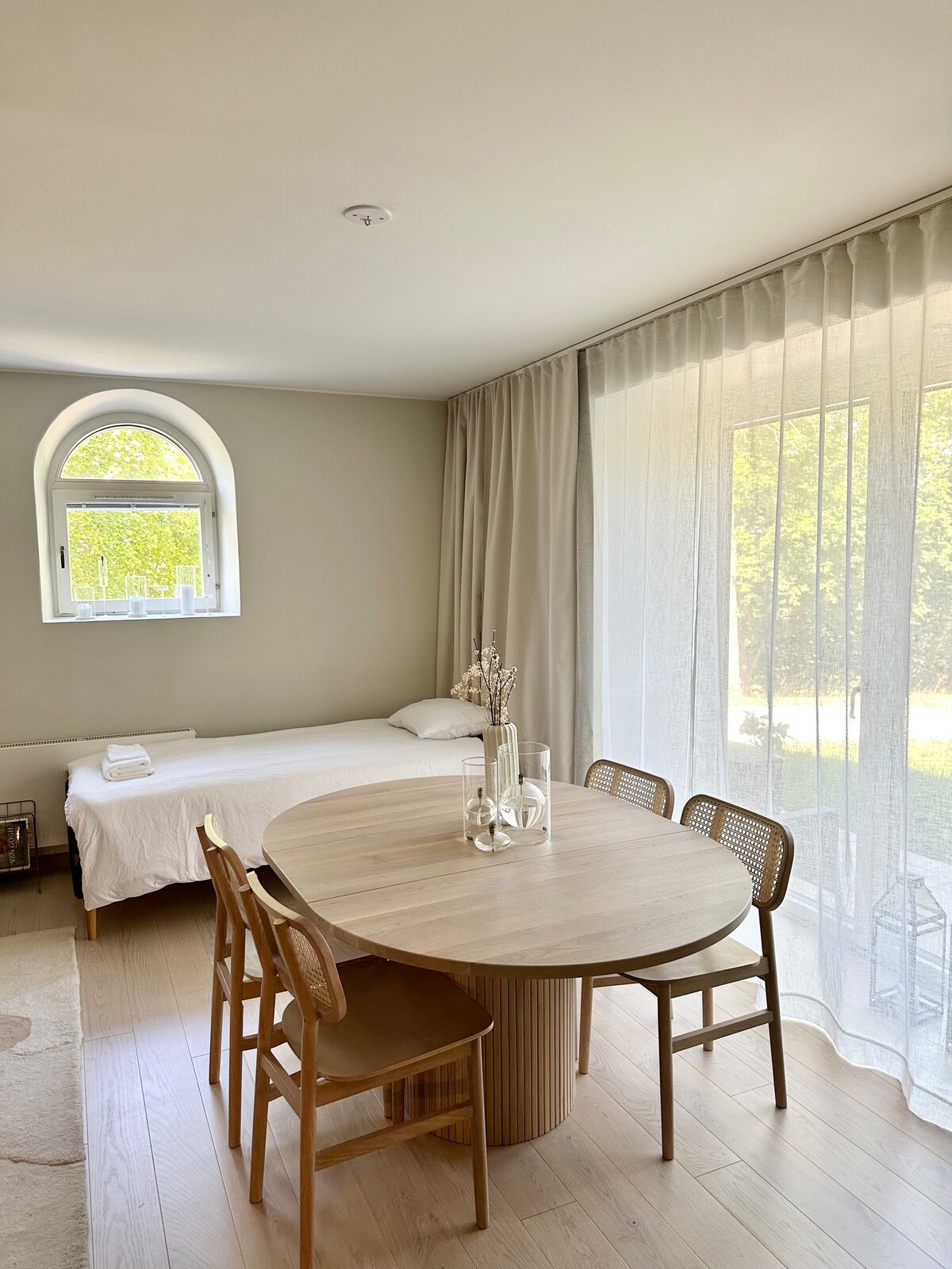 Casa tranquila e fresca, base para todas as experiências na ilha. Deite-se na cama de carvalho à noite e encontre a manhã no pátio. O estacionamento está incluído e o carro pode ficar parado, pois as diversões e experiências de Visby podem ser alcançadas a pé. Roupas de cama incluídas. Toalhas de banho e toalhas de rosto também estão incluídas. Quero que as toalhas de banho fiquem no apartamento, então, se você for à praia, pode levar sua própria toalha de banho. A limpeza não está incluída, mas pode ser adquirida.