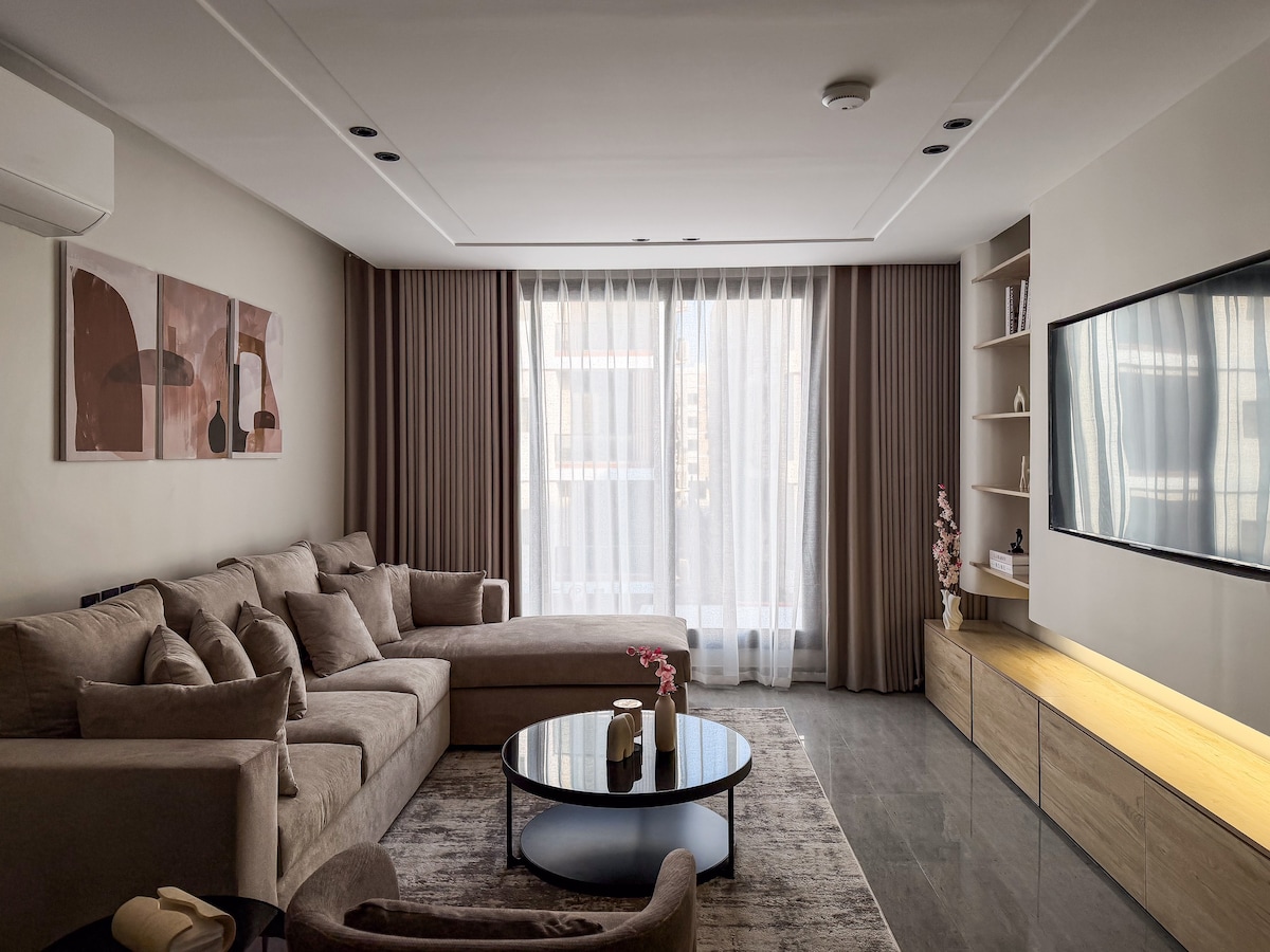 M.K1 Residence - Apt Near the Bridge 3 Bedrooms Fully Furnished 2 Bathrooms 1 Toilet 1 Living Room With A " 75" LG UHD Smart TV Wi-Fi "Fast Fiber Optic Internet" 5G Fully equipped kitchen Dining table Smart Entry Balcony with outdoor seating شقة بالقرب من الجسر 3 غرفة نوم 2 دورات مياه 1 مرحاض LG UHD Smart TV "غرفة معيشة مع شاشة "75 إنترنت (ألياف ضوئية) سريع مطبخ متكامل طاولة طعام دخول ذكي بلكونة مع جلسة خارجية