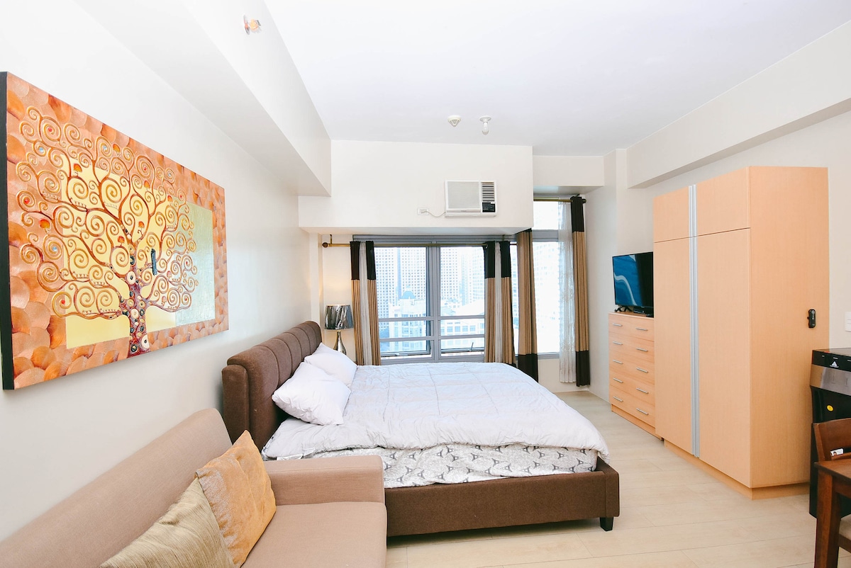 Relaxe em um estúdio em um andar alto no coração de Eastwood City, com uma bela vista da cidade. A poucos passos de restaurantes, cafés e do shopping — perfeito para férias em casa ou viagens a trabalho. Aproveite Wi-Fi rápido de 433 Mbps, Smart TV com Netflix (4K) e Chromecast. Acomodação limpa e bem conservada, projetada para uma estadia confortável e sem complicações. Localizado em um prédio seguro com piscina e acesso à academia, além de estacionamento GRATUITO — um bônus raro em Eastwood. Caminhe até lojas, restaurantes e a vida noturna em poucos minutos.