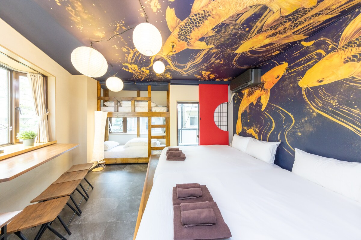Esta é uma acomodação em casa particular com um banho ao ar livre que pode acomodar apenas duas pessoas, a 11 minutos a pé da Estação Asakusa. Há uma sala de estar no primeiro andar e um banheiro de cipreste no segundo andar com um quarto king size e um terraço direto. Também é fácil chegar a Shibuya, Ginza, Ueno e Akihabara de metrô, tornando-a uma base conveniente para passeios turísticos em Tóquio. Há supermercados, lojas de conveniência, restaurantes, cafés elegantes e lojas diversas nas proximidades. Há também uma porta Luup, por isso também é uma boa ideia andar livremente em um kickboard elétrico. Acesso Estação 🚶♀️Asakusa (linha Ginza): cerca de 11 minutos a pé/Estação Asakusa (Tsukuba express): 9 minutos a pé 🚆 Akihabara: cerca de 5 minutos/Ginza: cerca de 16 minutos/Shibuya: cerca de 35 minutos Os hóspedes que ficarem no Edifício Oeste da Rua Yukiya também terão acesso ao Balcão de Informações Turísticas Asakusa, que é operado por nós. Além de consultas sobre passeios turísticos, você pode oferecer aos hóspedes dicas exclusivas sobre "jóias escondidas" e lugares locais que não estão nos guias. Há também um serviço de entrega de bagagem disponível, então fique à vontade para passar por aqui.
