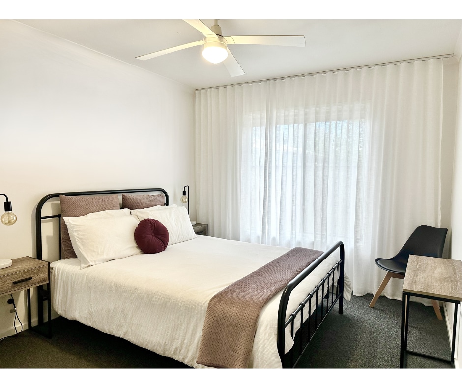 Estamos localizados no coração de Echuca, com cafés, restaurantes e o Historic Port Precinct a uma curta distância a pé. A unidade é composta por dois quartos grandes com acesso direto ao banheiro contemporâneo, uma cozinha totalmente equipada, 1 cama king size (ou 2 camas de solteiro) e uma cama queen size. O acesso à piscina no solo, quadra de tênis e trilhas pitorescas do rio Campaspe tornam esta uma escolha perfeita para casais ou uma família de quatro pessoas.