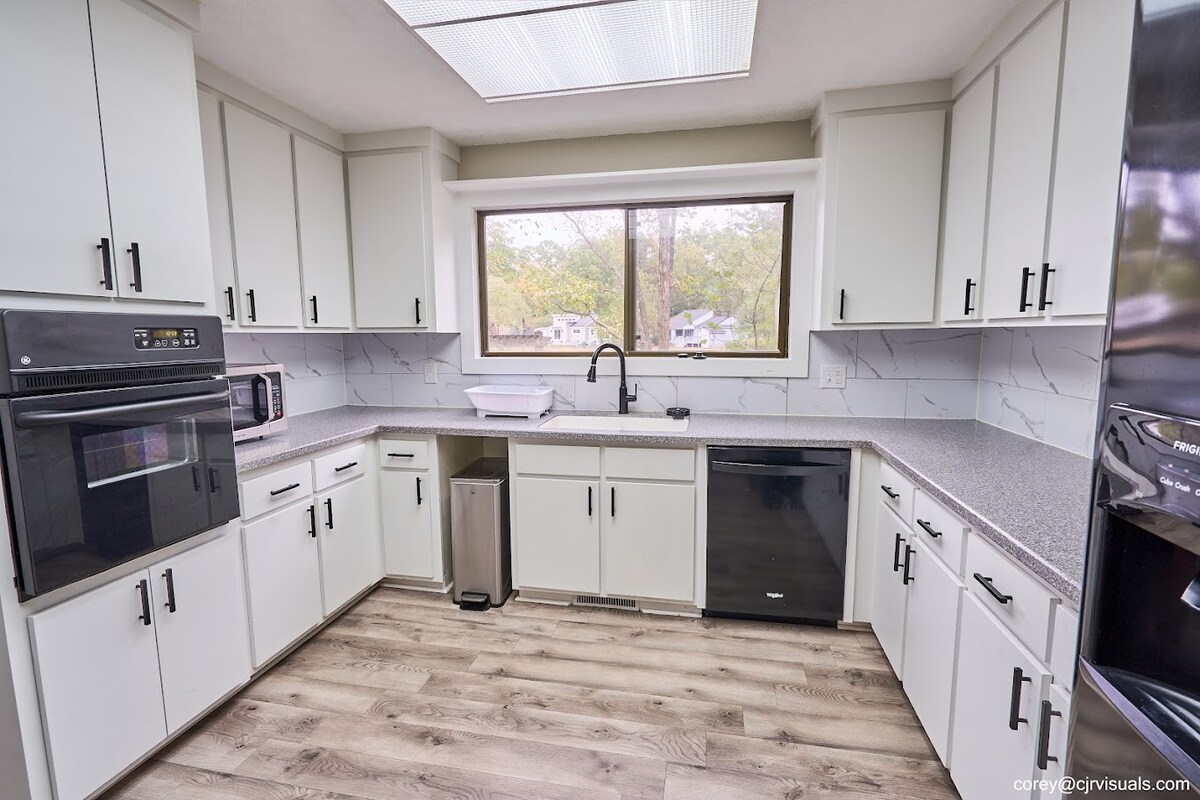 Reconnect with loved ones in this family-friendly place. Located on a quiet street with plenty of pines, plenty of space indoors and out for the family, a well equipped kitchen, handicap accessible, and parking for four cars. The neighborhood is siren and located within three miles of any event or eating locations (the Mills, Event Center, and other attractions).
