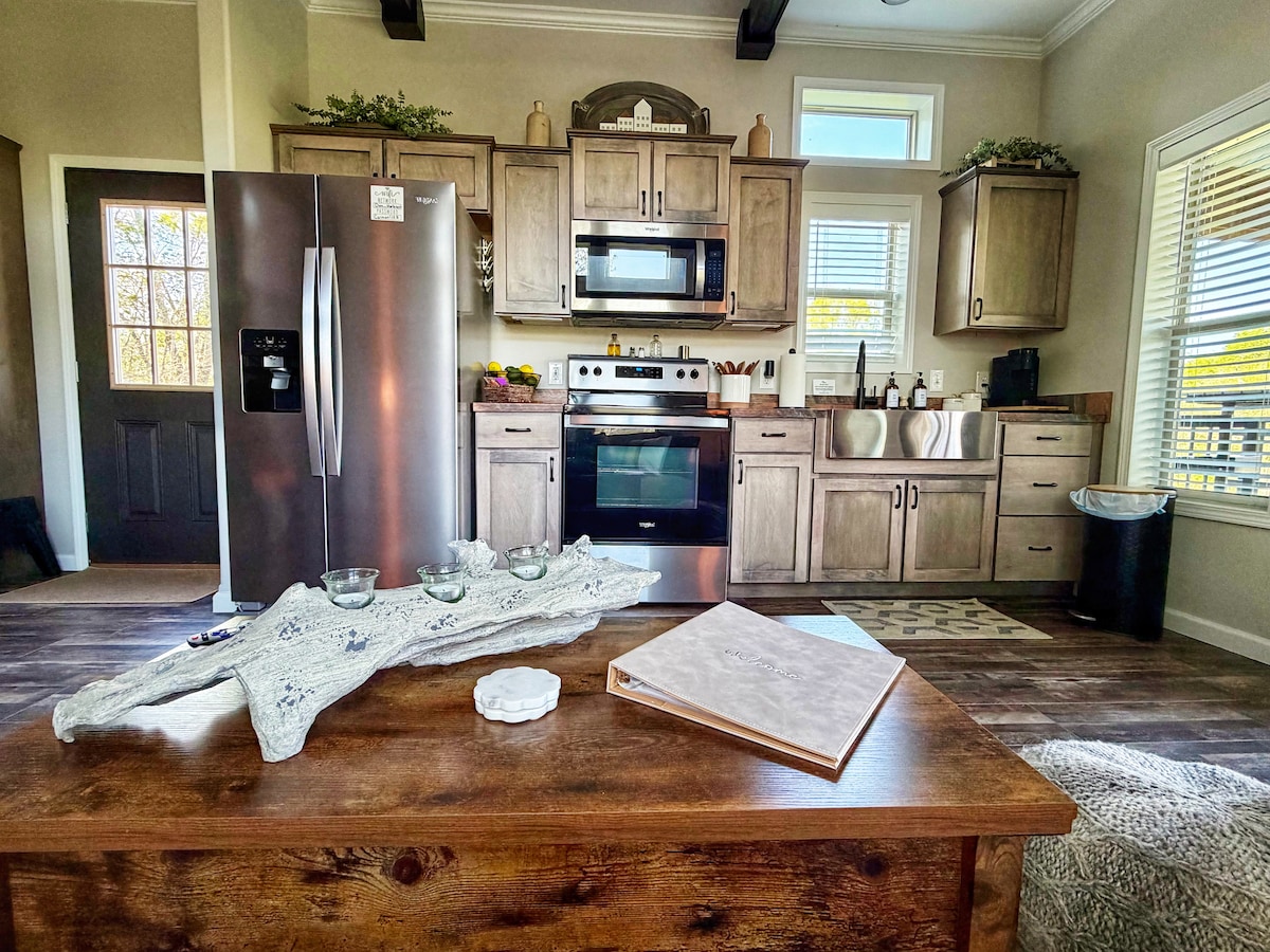 Você jamais vai esquecer da sua estadia neste lugar romântico e marcante. Foi recentemente reformado. Perfeito para uma escapadinha curta ou uma estadia longa. Ambiente rural tranquilo, mas perto de muitas atrações. Desfrute de caminhadas e passeios turísticos em Mammoth Cave. Curta distância de carro até Bowling Green para o museu Corvette... e muitas outras opções para passeios/compras. Tem cozinha completa com todos os itens básicos. Lareira. Pátio/varanda ao ar livre.