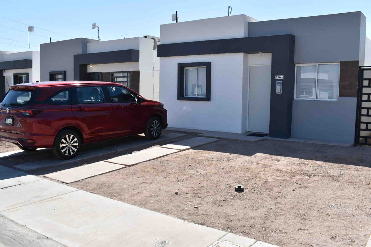Casa minimalista aconchegante de três quartos localizada em área residencial privada. A casa tem uma cozinha totalmente equipada e áreas de estar confortáveis. Acesso rápido a: aeroporto, porto de entrada Calexico East, shopping center Sendero com variedade de lojas nas proximidades, além de acesso rápido à principal Boluevard Lazaro Cardenas. Dentro da área residencial, você encontrará um parque equipado com um campo de futebol, pista de corrida e área de lazer para crianças. A uma curta distância, você encontrará um 7-eleven, OXXO e muitas pequenas empresas.