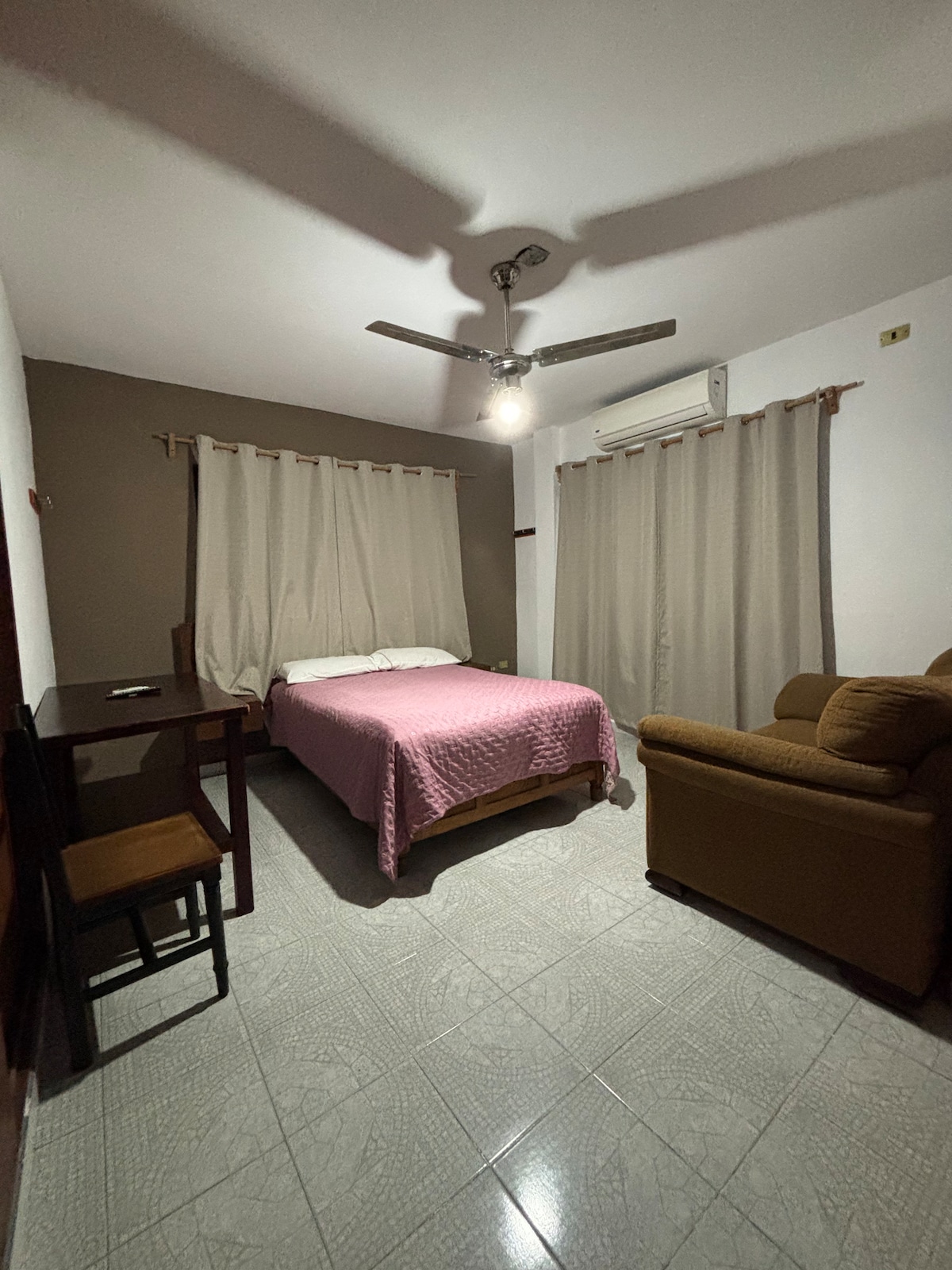 totalmente novo, localizado em uma área muito próxima a supermercados, áreas comerciais e o centro da cidade. Tem um lugar para estacionar Equipado com Wi-Fi, cozinha, sala de estar, smartv, minisplit de 1,5 toneladas, frigobar, armário, cafeteira, micro-ondas, grelha elétrica, banheiro privativo, água quente.