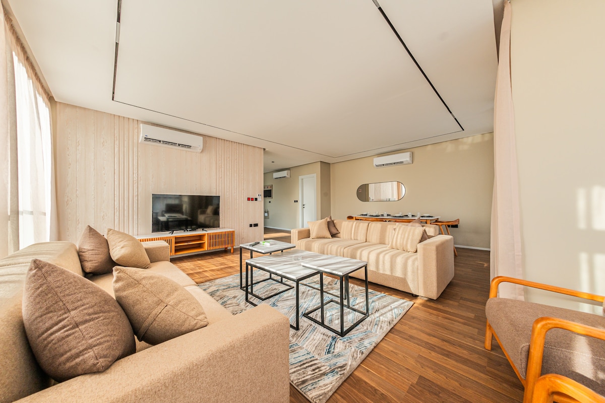 Experimente o conforto de um hotel em um prédio totalmente privado localizado em uma das áreas mais sofisticadas do Cairo Novo — a poucos passos dos melhores shoppings, cafés e restaurantes. Aproveite o atendimento da equipe 24h, serviço de limpeza diário, manutenção rápida, Wi-Fi de alta velocidade, fechaduras inteligentes em todas as unidades e cobertura de CFTV ao ar livre. Perfeito para viajantes de negócios e lazer que buscam conforto, privacidade e segurança.