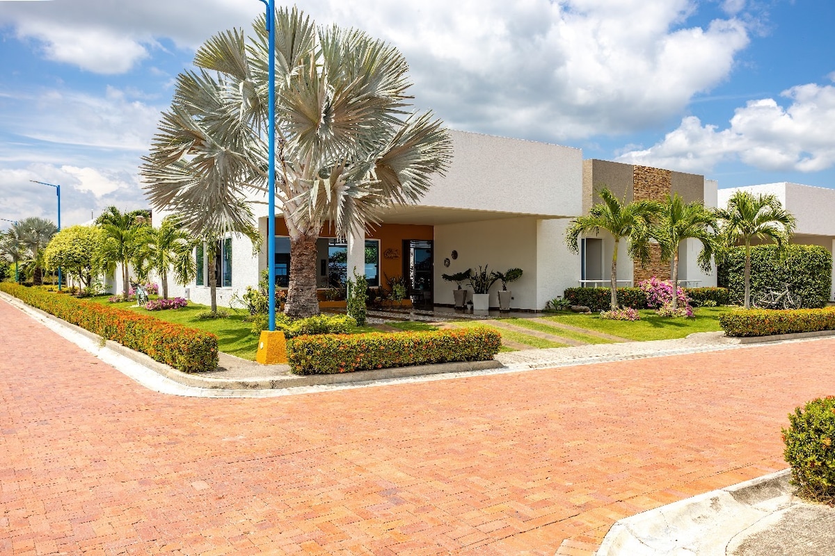 Hermosa casa de descanso en condominio cerrado, ideal para descansar, y gozar de la privacidad, habitaciones con ventilador y aire acondicionado, sala amplia y acogedora con juegos de mesa, lo más importante disfrutar de una piscina privada a la cuál pueden acceder a cualquier hora.