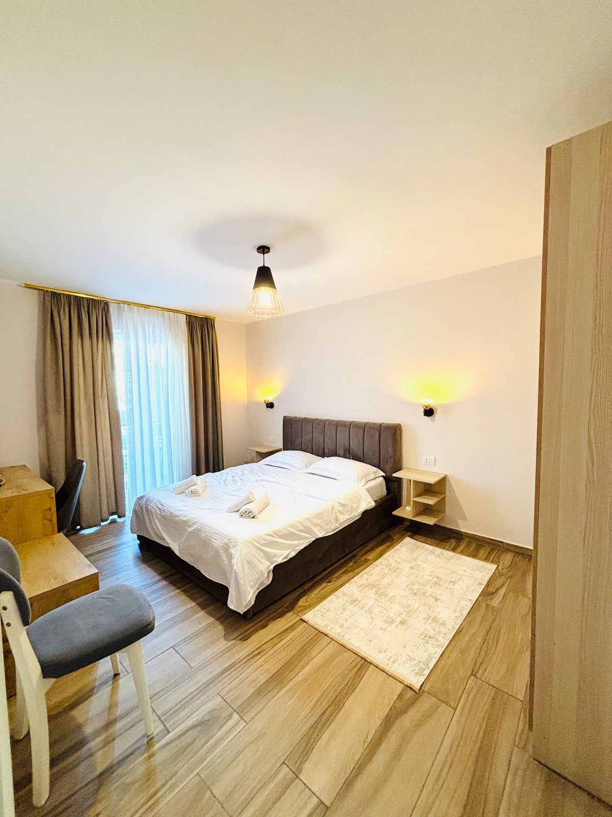 Toque piano no nosso encantador apartamento. Experimente a mistura perfeita de conforto e conveniência em nosso espaço recém-mobiliado. A localização no piso térreo oferece a vantagem única de um jardim privativo e varanda, proporcionando uma fuga serena da cidade movimentada. Nosso apartamento está equipado com todas as comodidades de que você precisa para uma estadia confortável. De uma cozinha totalmente abastecida a quartos aconchegantes e uma espaçosa área de estar. Reserve agora para uma estadia inesquecível no coração de Tirana!