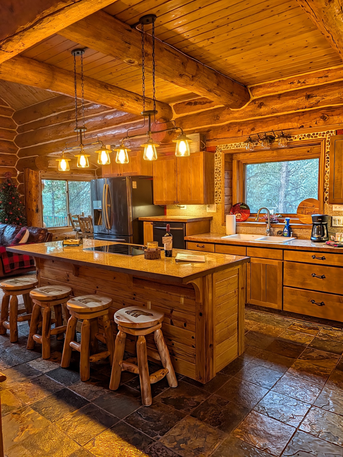 Fuja para esta cabana de 3 quartos e 2 banheiros em 5 acres privados nos pinheiros do Colorado. Construída em 1974 e cuidadosamente renovada, ela combina charme rústico com conforto moderno. Tetos abobadados, interiores de madeira aconchegantes e luz natural brilhante por toda parte. Relaxe nos espaços de estar aconchegantes, cozinhe na cozinha moderna, reúna-se ao redor da fogueira sob as estrelas ou mergulhe na banheira de hidromassagem. Perfeito para famílias, casais ou amigos que procuram um refúgio tranquilo com muito espaço para relaxar e explorar.