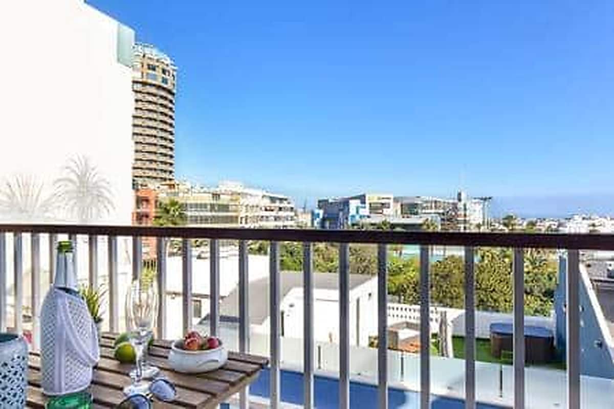Bem-vindo ao TopSun, sua cobertura com um espaçoso terraço e vista para a cidade! Esta encantadora cobertura de 70 m² (incluindo 30 m² de terraço) está localizada no 6º andar e oferece uma experiência única com decoração moderna e funcional. Seu grande terraço garantirá os melhores momentos de relaxamento e banhos de sol. Equipado com todas as comodidades modernas, incluindo uma Smart TV e ar condicionado, 'TopSun' é o lugar perfeito para uma escapadinha tranquila em Las Canteras e Santa Catalina.