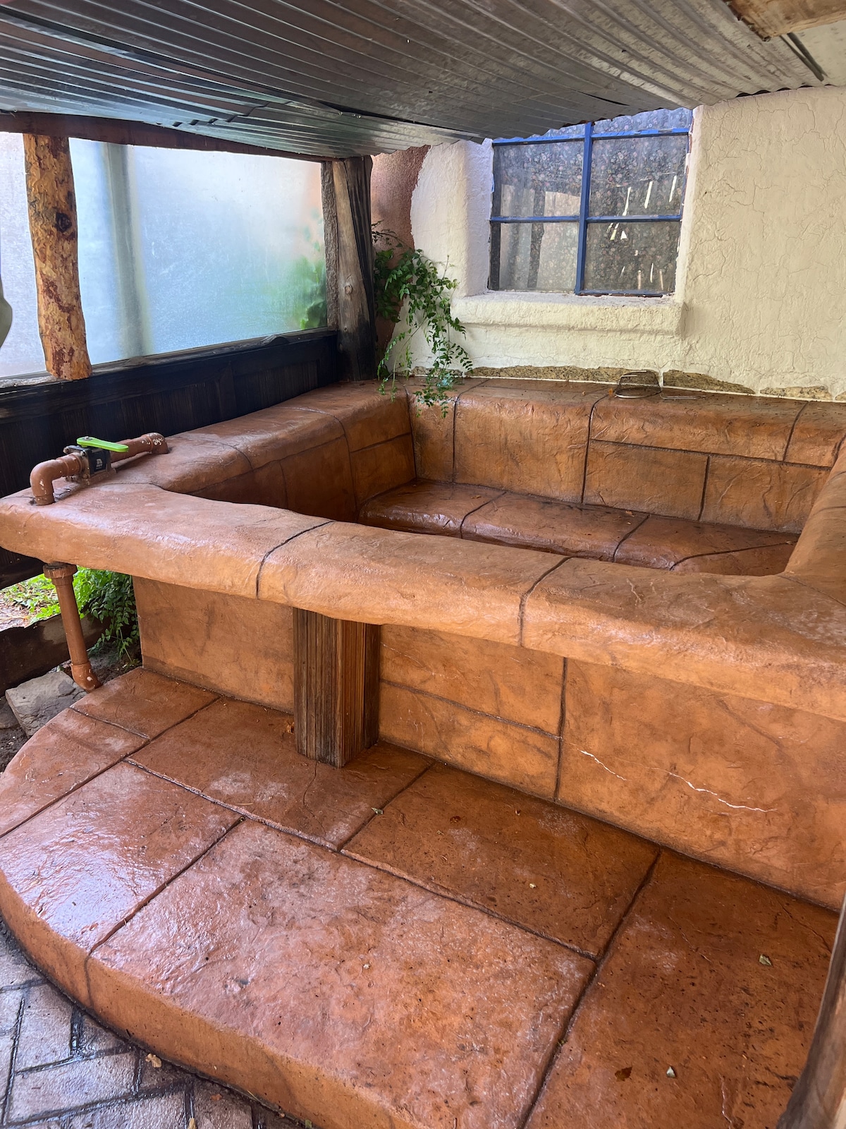 Ótimo espaço privado para fugir no extremo norte (fresco) do complexo de apartamentos. Abre para a cama do jardim e pátio privativo com banheira de águas termais personalizada. Do outro lado da rua do supermercado local. Nova banheira mineral de águas termais personalizada está completa!! Unidade de estúdio pequena super limpa com cama de tamanho completo, mesa de jantar, chuveiro de azulejos, fogão de apartamento apenas e frigobar. É um estúdio acolhedor privado e a banheira é apenas para você em seu próprio pátio, fora da sua porta da frente.