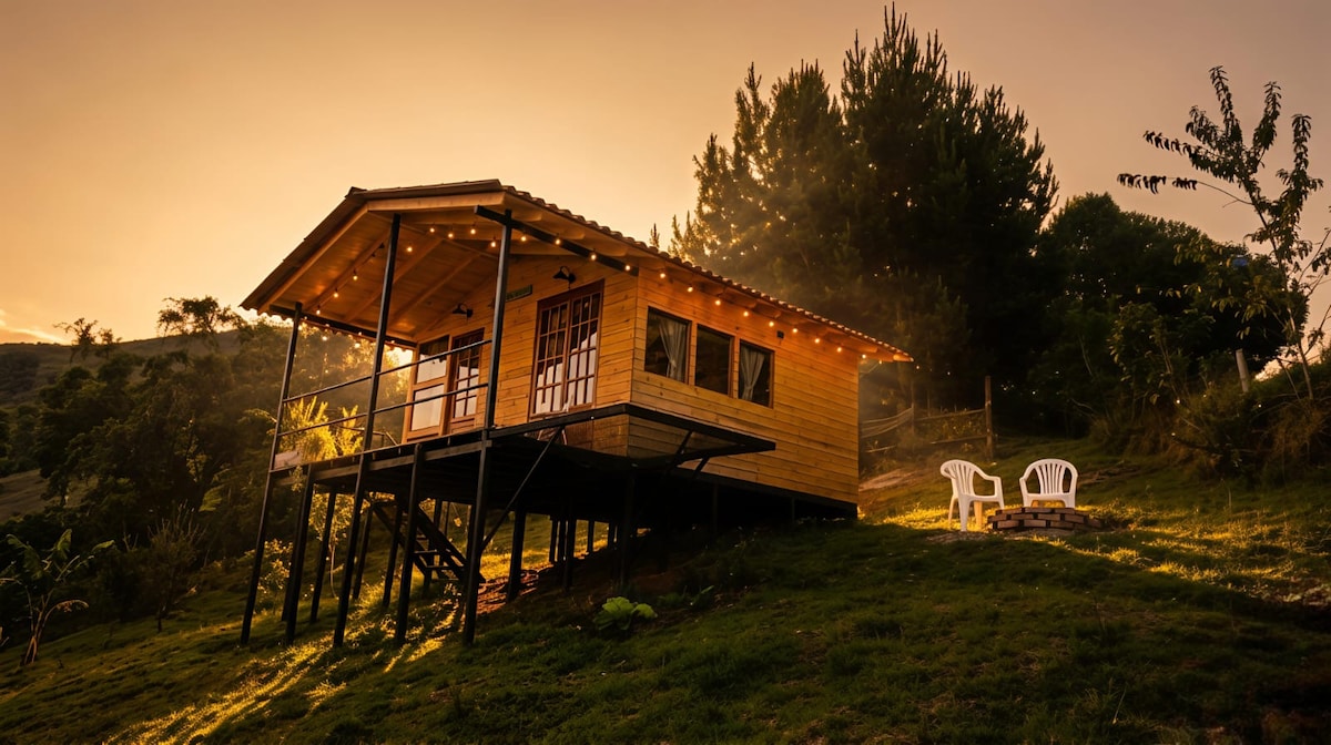 Hermosa cabaña campestre perfecta para parejas que quieran escaparse a un lugar mágico, lleno de naturaleza, paz y tranquilidad. La cabaña tiene acabados y decoración en madera con iluminación natural todo el día. Se puede prender la chimenea para calentar el espacio y relajarse viendo las montañas. Cuenta con una cocina equipada para preparar todo tipo de comidas. Abrimos nuestras puertas a todos los que quieran vivir una experiencia exclusiva y tranquila.