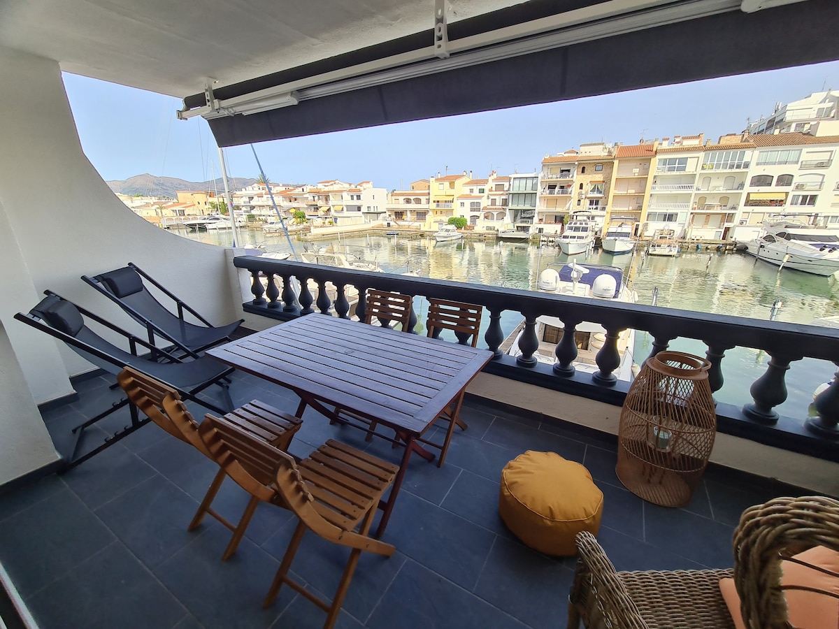 Apartamento totalmente renovado com um decorador! Localizado no centro de Empuriabrava, a 400 metros da praia e perto de lojas e restaurantes. Vistas deslumbrantes para o canal e para a montanha. Descanso garantido... Tem 2 quartos agradáveis e 2 casas de banho. Fica no piso 1,5 de um pequeno edifício de 3,5 andares. Não há elevador. A TV tem canais franceses e pode ser conectada à Internet. O apartamento tem Wi-Fi 4G. Há muitas vagas de estacionamento gratuitas em frente e ao redor do prédio.