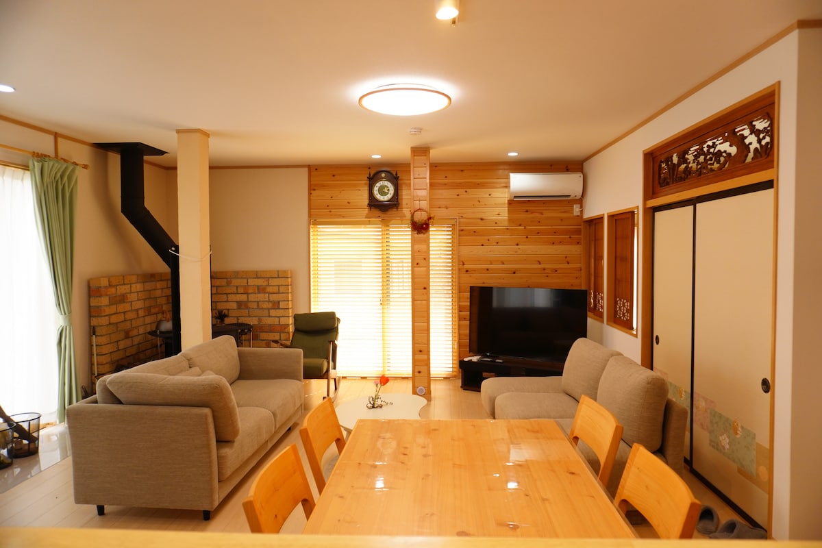 Abrimos uma casa renovada como uma casa de hóspedes em uma área de vila de terras altas, a cerca de 10 minutos de carro do Intercâmbio de Iida. Não é luxuoso, mas foi renovado com foco na criação de um espaço confortável. Seguro mesmo no inverno.Aproveite o tempo com seus amigos em um quarto acolhedor. Você pode ficar em um ambiente tranquilo longe de áreas residenciais sem se preocupar com pessoas assistindo. É um local tranquilo onde você pode ver o céu estrelado ao lado do deck de observação, o acampamento à beira do lago adjacente ou o jardim, onde você pode caminhar à noite. (* O deck de observação não pode ser escalado durante a temporada de neve) No interior, você também pode desfrutar de um home theater com um projetor que é fácil de operar com Wi-Fi.Não há casas privadas ao lado, então você pode desfrutar de música alta a qualquer momento. Sinta-se à vontade para usar os 84 ㎡ de área ocupada durante a sua estadia. Você pode usar a máquina de lavar e secar roupa gratuitamente, por isso é recomendado para estadias de longa duração. Temos instalações que permitem que você cozinhe suas próprias refeições, para que possa desfrutar de uma estadia que se adapte aos seus planos de viagem. Durante o inverno (janeiro a meados de março), a neve e o gelo podem permanecer nas estradas perto da instalação.Quando você vier, por favor, venha com um carro com pneus sem pinos e, se possível, um 4WD.