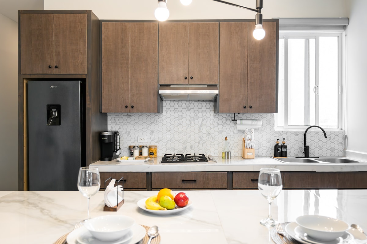 Este apartamento de 100 m ² foi projetado com acabamentos e decoração de alta qualidade. Esta é uma unidade espaçosa com tetos altos e toques industriais. Possui uma cozinha totalmente equipada e ambos os banheiros têm chuveiros quentes perfeitamente pressurizados. Os dois quartos incluem TVs de 60"com Netflix assinada com Wi-Fi de 125 meg. O apartamento fica dentro do complexo Casas Sanblu, que tem 6 unidades no total que compartilham um estacionamento fechado privado que acomoda 8 carros. Fornecemos nota fiscal para clientes corporativos!