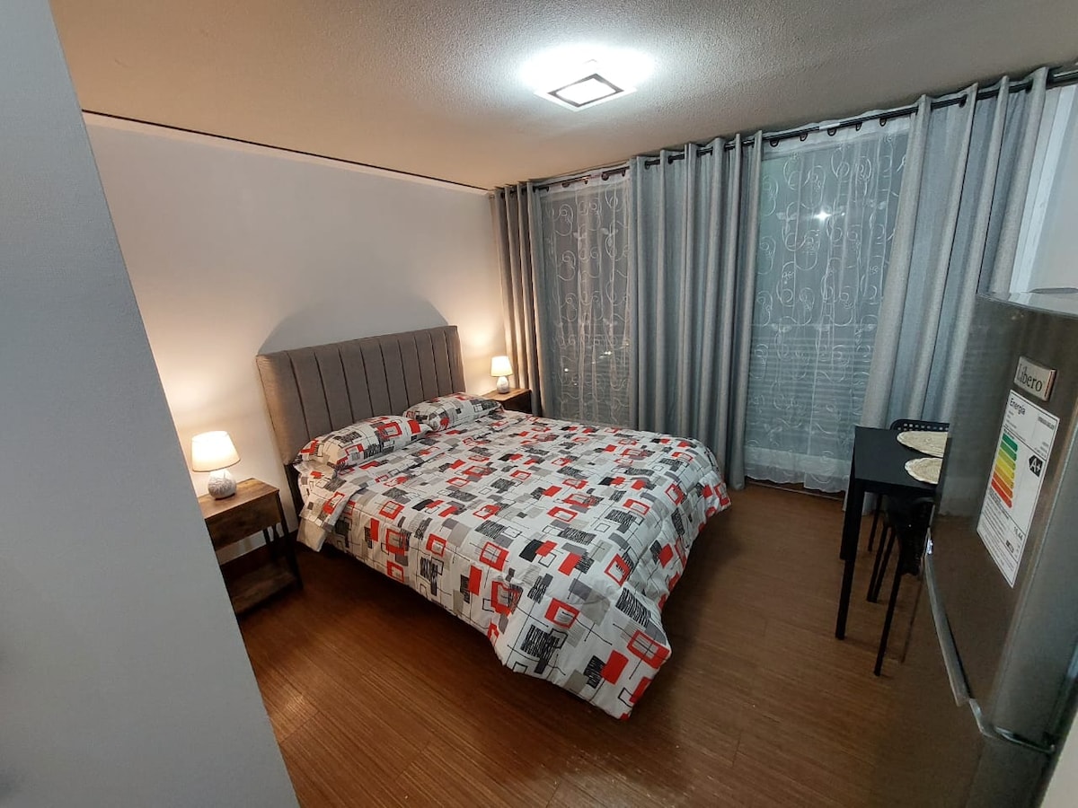 Descubra este estúdio moderno e luminoso localizado no coração de Santiago. Perfeito para viajantes ou profissionais, está localizado em um exclusivo complexo residencial e comercial com todos os serviços a poucos passos de distância. A poucos minutos de transporte público, restaurantes, lojas e principais pontos turísticos, este espaço oferece conforto, estilo e a melhor localização para explorar a cidade. Reserve e viva uma experiência única em Santiago!