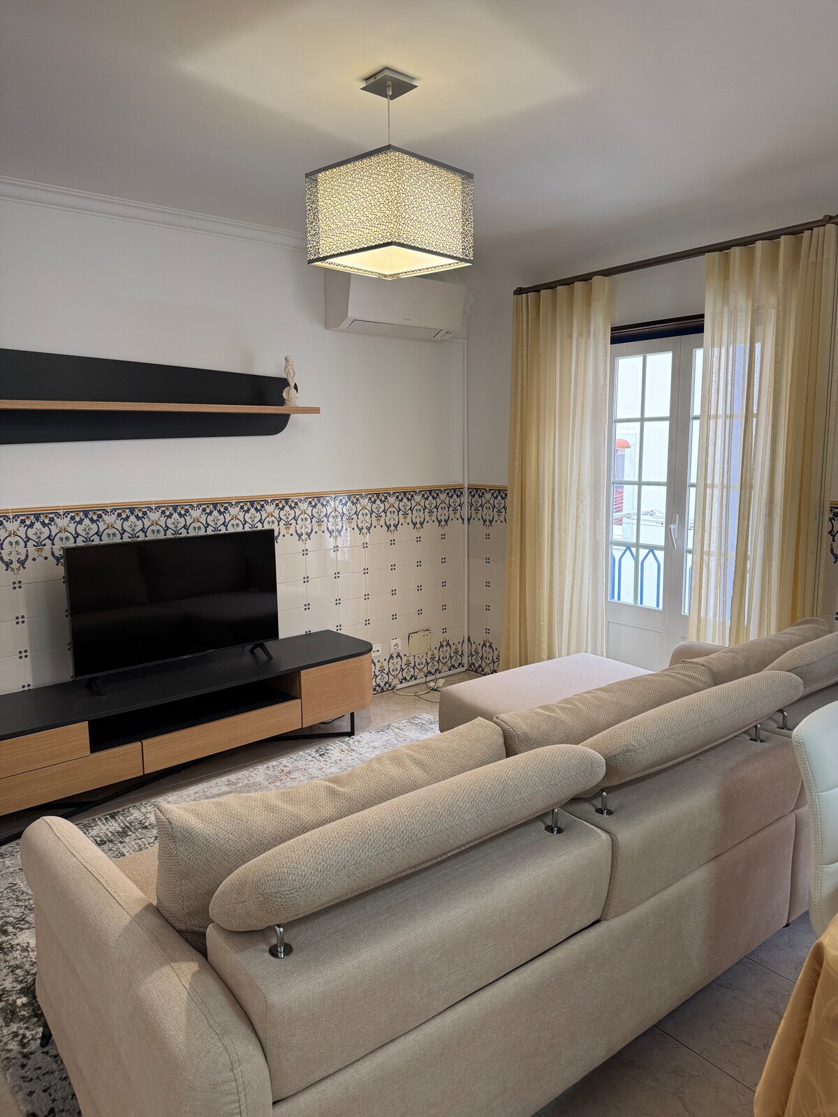 Apartamento reconstruído por arquitecto, excelente privacidade, exposição solar, com wifi, e praia a 150m. 1 suite com SPA e banho turco com aromaterapia. 1 suíte com terraço com vista mar, tela de projeção de cinema. Sala com vista de mar, rio, e terraço, onde poderá disfrutar de uma zona de estar e de um barbecue com grelha em ferro forjado. Perto de restaurantes, cafés e supermercado, e estação de comboio. Ar condicionado e piso aquecido em todas as áreas, TV 4K e box independente por suíte.