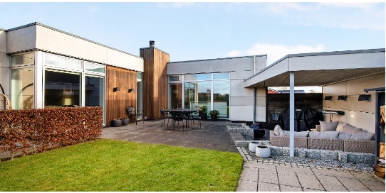 Deliciosa vila funcional projetada por arquiteto, localizada em Gl. Gjesing, a algumas centenas de metros de Nørreskoven - mais conhecido por suas grandes faias e o zoológico, bem como muitos parques infantis. A villa tem um total de 174 metros quadrados, com luz incrível e interiores emocionantes. Espaço para umas férias relaxantes com a família.