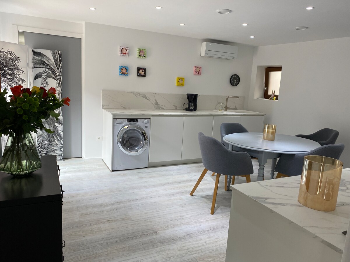 Venha descobrir Estrasburgo e seus mercados de Natal, Europapark/Rulantica a 35 minutos, a rota dos vinhos da Alsácia. Bonita dependência tranquila a 12 km de carro do centro de Estrasburgo. Totalmente reformado, com cozinha e banheiro, entrada privativa, estacionamento no pátio interno com portão/câmeras de segurança, terraço com vista para o jardim que leva a um calçadão à beira-mar. Berço/cadeira de bebê, bicicletas disponíveis. Café/chá disponíveis. Piscina não incluída no aluguel.
