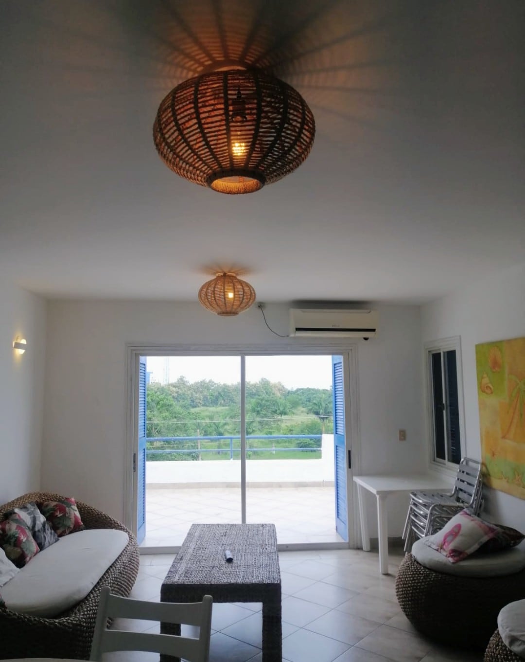 Este elegante apartamento de 1 quarto em Tonsupa é o refúgio perfeito para umas férias à beira-mar. Com um design moderno e aconchegante, oferece uma sala de estar bem iluminada, uma cozinha totalmente equipada e um quarto confortável com uma cama queen size. A poucos passos da praia, você vai aproveitar a proximidade com o oceano. Ideal para relaxar, este espaço combina conforto e estilo em um ambiente paradisíaco. Venha e viva uma experiência romântica no litoral!