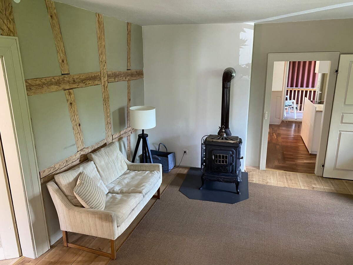 Bem-vindo ao nosso encantador apartamento nivelado com sua própria entrada – perfeito para uma estadia relaxante. A propriedade oferece tudo o que você precisa - uma cozinha totalmente equipada, TV a cabo, bem como Wi-Fi gratuito para noites relaxantes ou trabalhar em casa. Um destaque especial é o prado adjacente com gazebo – ideal para um café da manhã aconchegante ao ar livre. Seja para um fim de semana ou uma estadia mais longa, aqui você pode se sentir em casa.