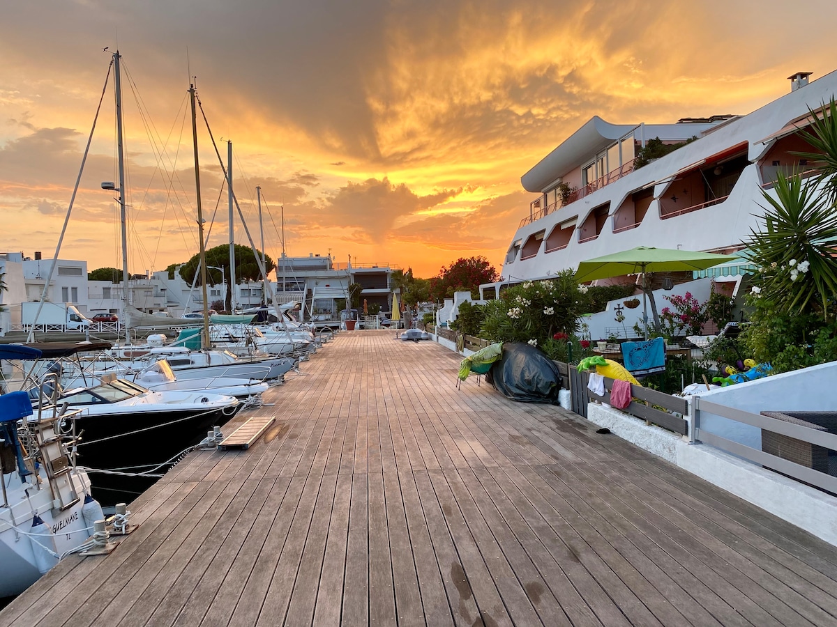 O sonho ao sol de Camargue! SUNNY MARINA, localizada em Port-Camargue, lado da praia sul: O apartamento, no 1º andar, acolhedor e confortável, com vistas deslumbrantes do corpo d 'água e das árvores ao redor, foi completamente repintado em junho de 2023. O quarto é virado a leste com sol pela manhã e a sala de estar e a cozinha, viradas a sudoeste, são muito brilhantes durante todo o dia. Um terraço não negligenciado permite que você almoce e relaxe, a 300 m de praias e lojas.