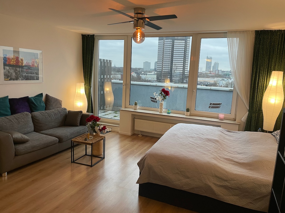 O apartamento é bem iluminado e agradável, localizado na bela e tranquila região de Mädchenviertel, em Rüttenscheid. A feira de Essen e o Museu Folkwang estão a 5 minutos a pé. Nas imediações, o "Rü" atrai com sua ampla variedade de restaurantes, bares e clubes – há algo para todos. Apesar da agitação noturna no fim de semana na "Rü", o estúdio é muito tranquilo e você mal acredita que está morando no meio da ação.