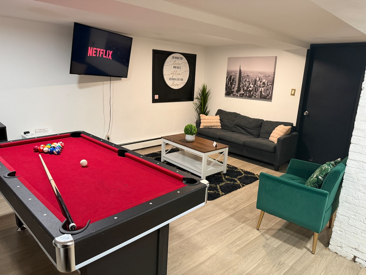 Reúna seus entes queridos para a melhor viagem neste refúgio moderno e de conceito aberto! Com 5 quartos, 4 banheiros e espaço para mais de 13 pessoas, há espaço para laços familiares e diversão em grupo. Interiores iluminados pelo sol e acabamentos elegantes criam um ambiente acolhedor e elegante, perfeito para celebrar, relaxar ou simplesmente desfrutar do tempo juntos. Idealmente localizado com fácil acesso a todos os destaques de NJ e aventuras de Nova York, é a mistura perfeita de conforto em casa e energia de fuga.