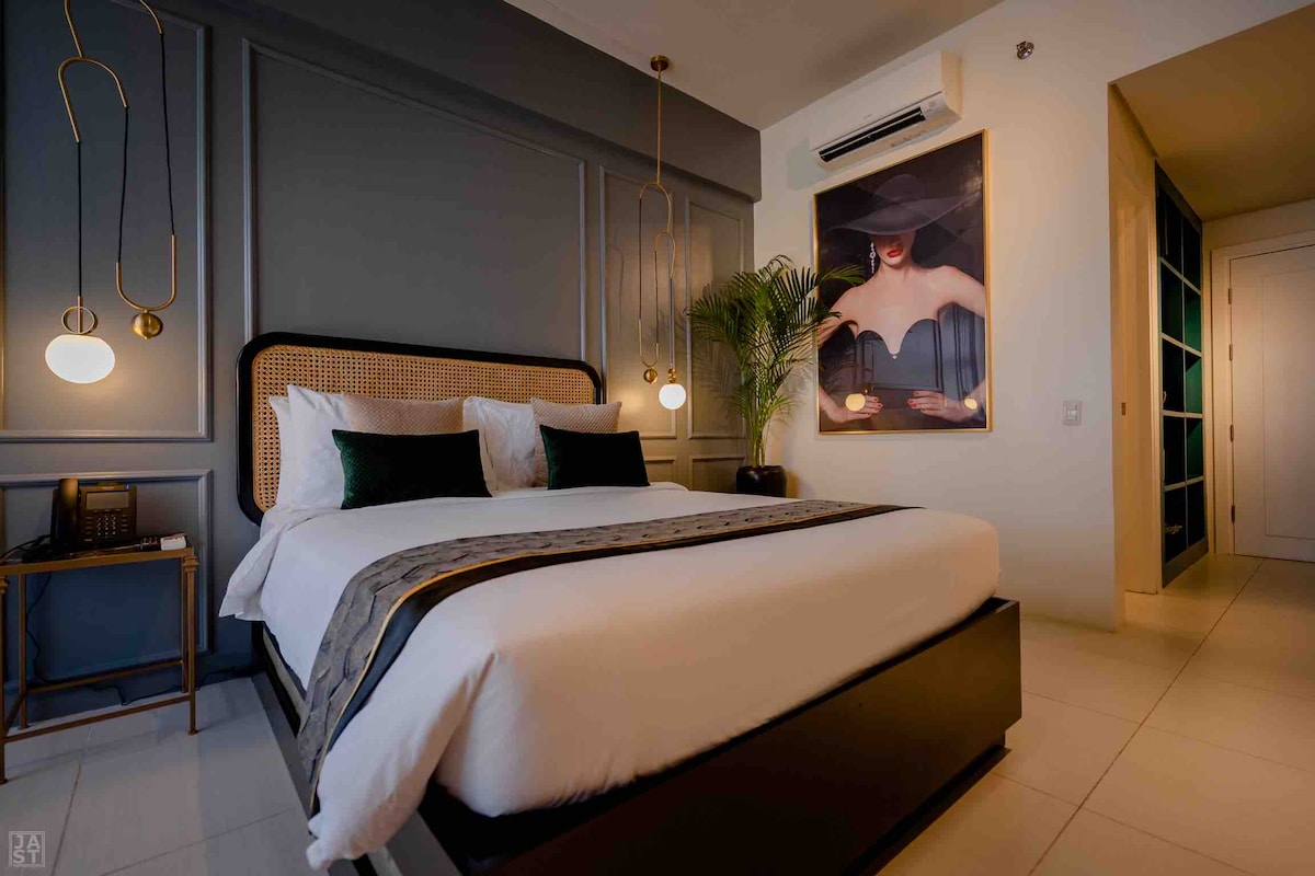 Hospede-se em um condomínio moderno, semelhante a um hotel, com 1 quarto, em Central Ortigas, a poucos passos do Westin Sonata Place, do SM Megamall e do Shangri-La Plaza. A unidade dispõe de entrada sem chave, persianas blackout, cozinha completa, chuveiro quente, máquina de lavar/secar e ar condicionado. Desfrute de comodidades premium no edifício, incluindo piscina, academia e sala de jogos — uma base fácil e confortável com excelente custo-benefício em Ortigas.