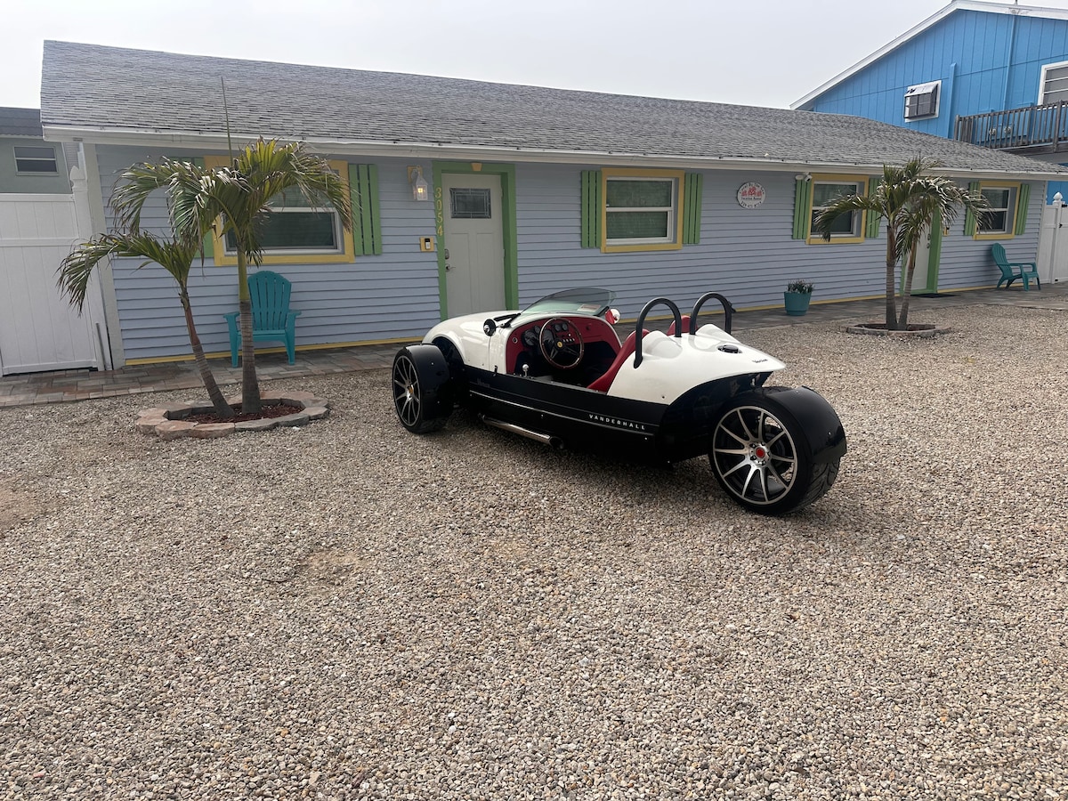 Pôr do sol à beira-mar 3052–3054 — Duas unidades idênticas Duplexes privativos de 2 quartos/1 banheiro, a 5 minutos a pé da praia. Desfrute de um spa de natação aquecido (híbrido piscina-spa) com poderosos jatos de natação para nadar contra a corrente e assentos de spa para até 8 pessoas. Funciona como uma piscina compacta para nadar, exercitar-se e relaxar (não é uma piscina de tamanho normal). Jardim em estilo resort com putting green, basquete, pingue-pongue, fogueira, gazebo com TV e jantar ao ar livre. Reserve ambas as unidades para 4BR/2BA.