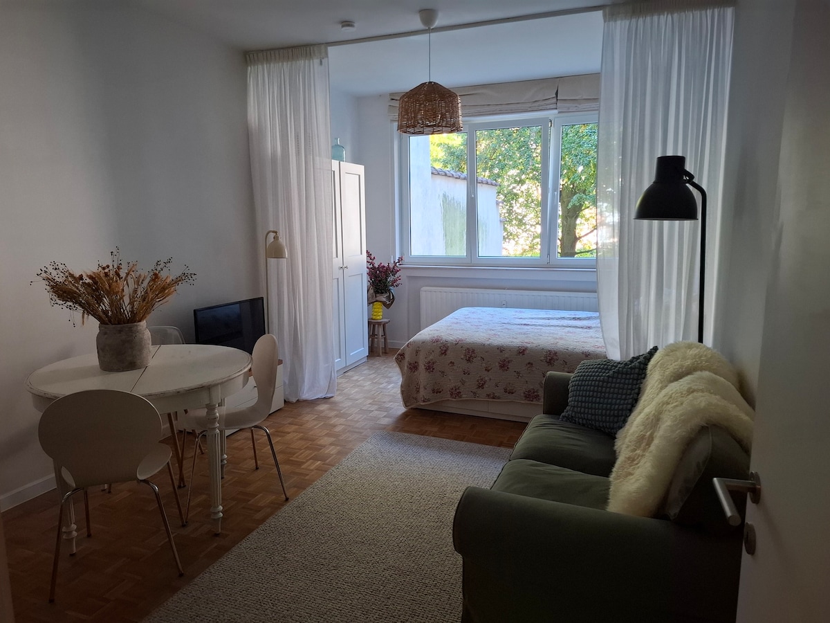This bright street-facing 35m² studio is set in a busy, residential area near Étangs d’Ixelles & Abbaye. Surrounded by green spaces, parks, and charming cafés, it’s perfect for short or mid-term stays. Whether you're here for work or leisure, it’s a practical base — close to ULB, Bois de la Cambre, Abbaye, Flagey and loads of public transports. Enjoy the natural light after a day exploring the city. 1 Queen bed | 1 bathroom | Fully equipped kitchen | Street view