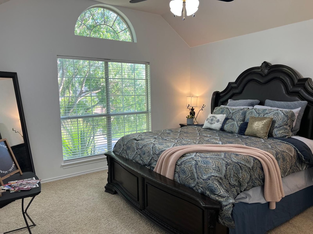 Bem-vindo ao seu quarto privativo aconchegante em nossa casa convidativa. Você terá acesso a uma cozinha totalmente equipada e desfrutará da comodidade de um belo parque bem atrás de nossa casa. Convenientemente situado a menos de 8 minutos do Aeroporto DFW, nossa casa está perfeitamente posicionada para relaxamento e exploração. Seu quarto privativo está cuidadosamente mobiliado com comodidades modernas, proporcionando uma fuga serena após as aventuras do seu dia.