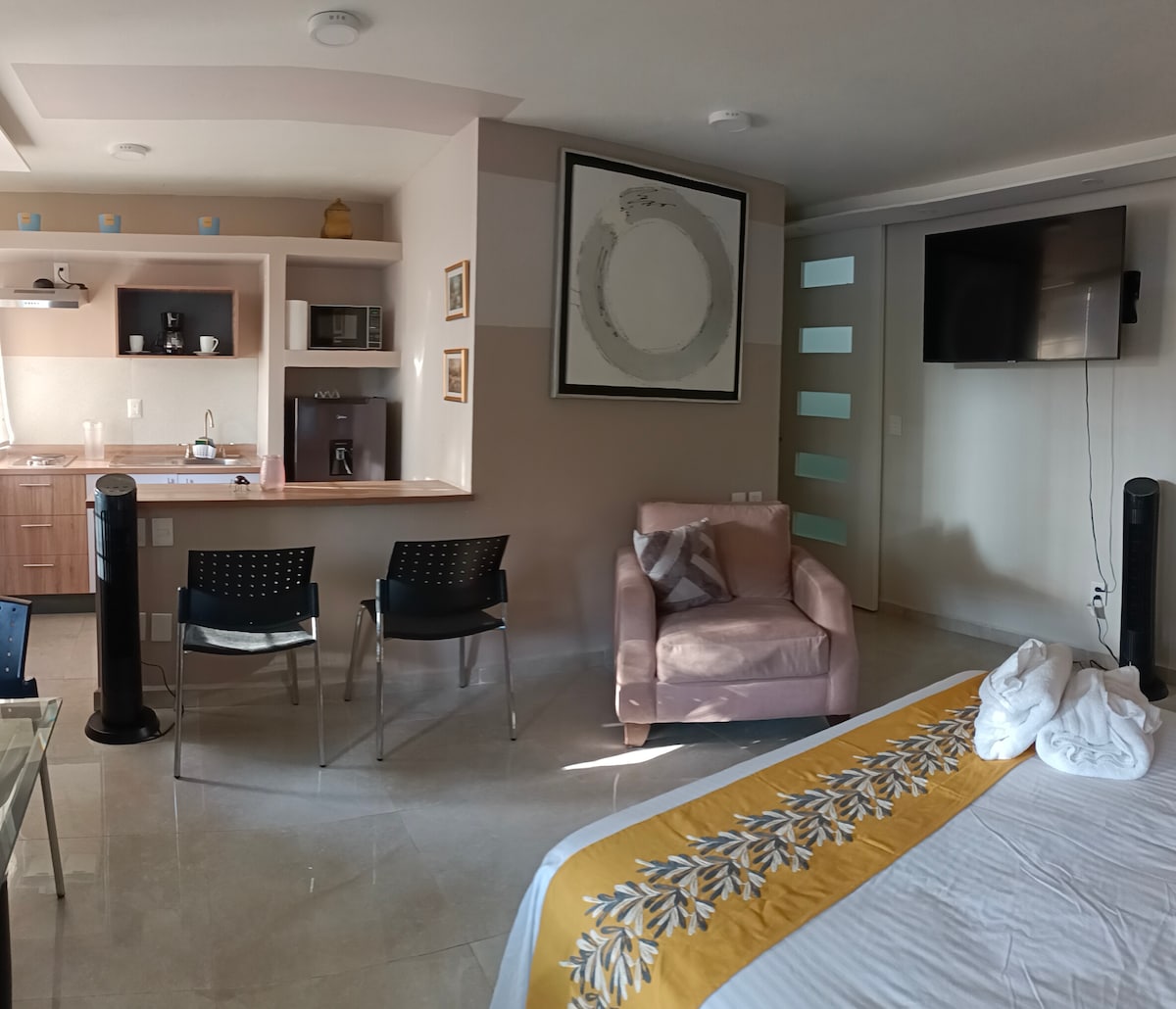 Apartamento/ estúdio privativo bonito, luminoso e espaçoso com 1 quarto, banheiro privativo, cozinha completa e internet. Ótima localização em uma das áreas mais belas e movimentadas da cidade por sua incrível variedade de restaurantes, cafés, bares etc. Você pode nos encontrar a 500 metros do Consulado Geral dos Estados Unidos, a 9 minutos da Expo Guadalajara (3,9 km)e a 7 minutos da Catedral de Guadalajara (2,6 km)