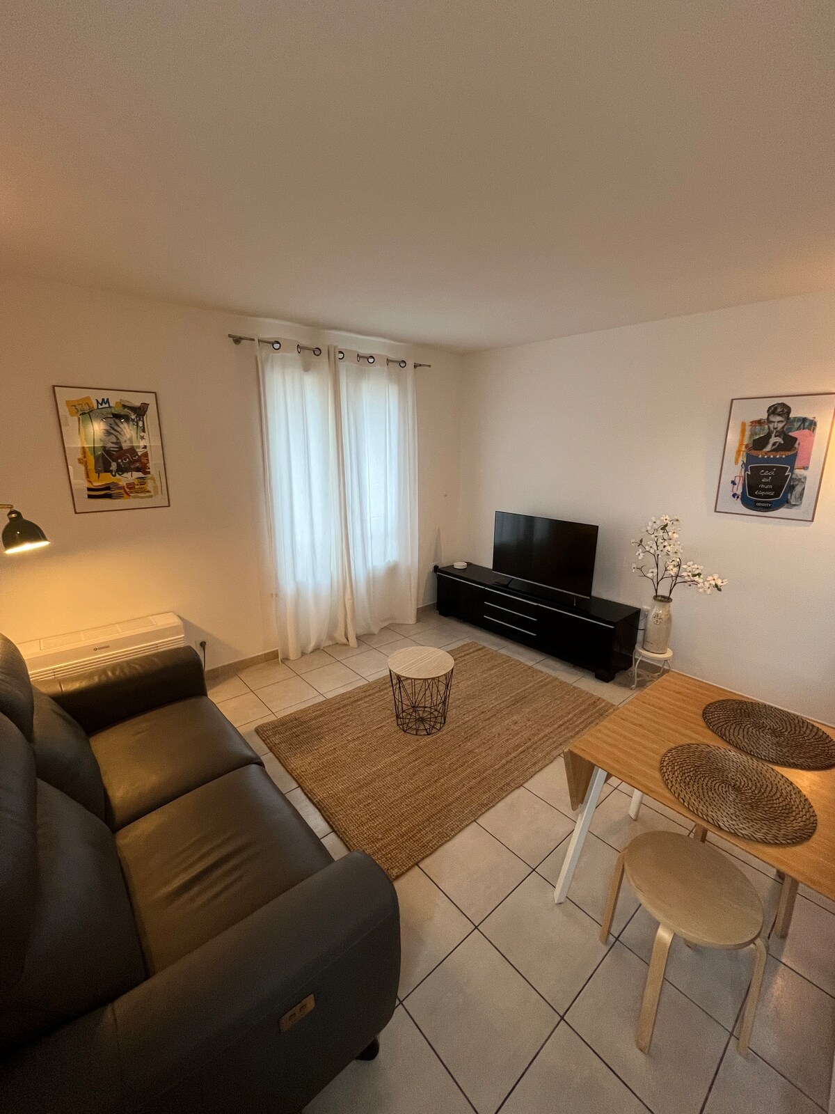 Au coeur historique d'Avignon Quartier Carreterie/place des Carmes/Pasteur Rue très calme en RDC Au pied des théâtres Grand T1bis de 40m2 cocooning spacieux et serein Salon avec canapé Coin chambre avec un lit de 160 (septembre 2024) Cuisine ouverte (Frigo, micro ondes, plaques induction, cafetière Senseo, bouilloire ..) Salle d'eau WC Cimatisation réversible Télévision 82 cm Draps et serviettes à disposition Non fumeur Parking des Italiens gratuit à 5 minutes par navette