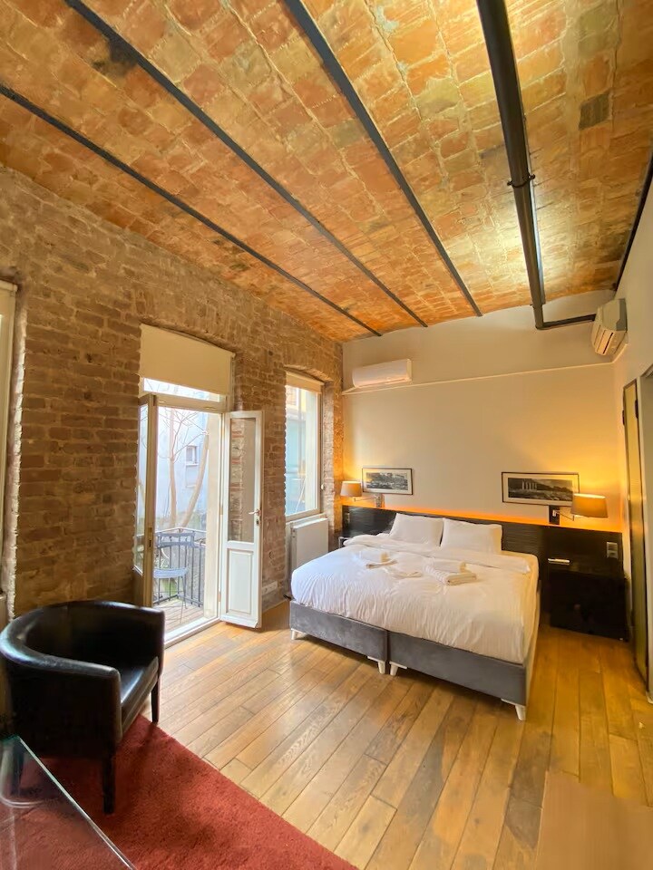 Tarihi dokusu korunarak özenle dekore edilmiş bu benzersiz oda, modern konfor ile nostaljik atmosferi bir araya getiriyor. Özel tasarım ahşap mobilyalar, sıcak aydınlatma ve özgün duvar detayları ile keyifli bir konaklama deneyimi sunuyor. İstiklal Caddesi’ne sadece 1 dakika, metroya ise 3 dakika yürüme mesafesinde bulunan bu oda, şehrin enerjisini keşfetmek isteyenler için harika bir seçenek.