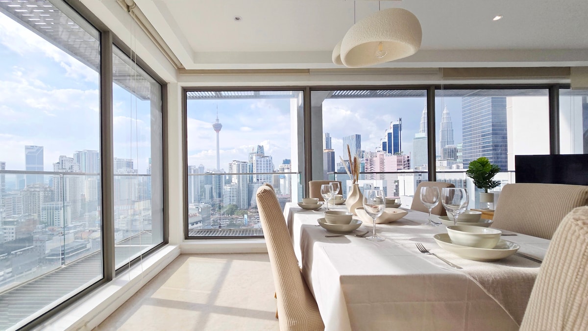 Aviso : Fechamento da piscina de 2 de março a 10 de abril de 2025 Explore o retiro perfeito do Airbnb aninhado no coração movimentado de Kuala Lumpur! Perfeito para famílias ou amigos em busca de uma acomodação aconchegante e tranquila. O apartamento está equipado com acesso à internet com alta velocidade, três quartos luxuosos e uma vista deslumbrante com vista para o KLCC, a torre KL e Menara Merdeka 118. Este local é ideal para turistas que procuram embarcar em uma viagem emocionante no vibrante centro de Kuala Lumpur.