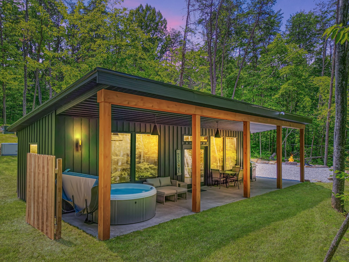 Por que você vai ❤️ The Ashton: ・Passeio romântico e isolado de 1 quarto na floresta Banheira de hidromassagem・ privativa sob as estrelas Design ・moderno com janelas do chão ao teto ・Refúgio para casais e seus pets ・・Cozinha completa elegante Área de fogueira aconchegante ・Wi-Fi rápido + Smart TV com streaming Refúgio na・ natureza a poucos minutos de Hocking Hills Chuveiro ・ luxuoso com box e pias duplas ・Ideal para um fim de semana romântico ou um retiro solo Clique em "❤️Salvar" para nos encontrar facilmente novamente. Leia o anúncio completo para descobrir todos os detalhes incríveis.