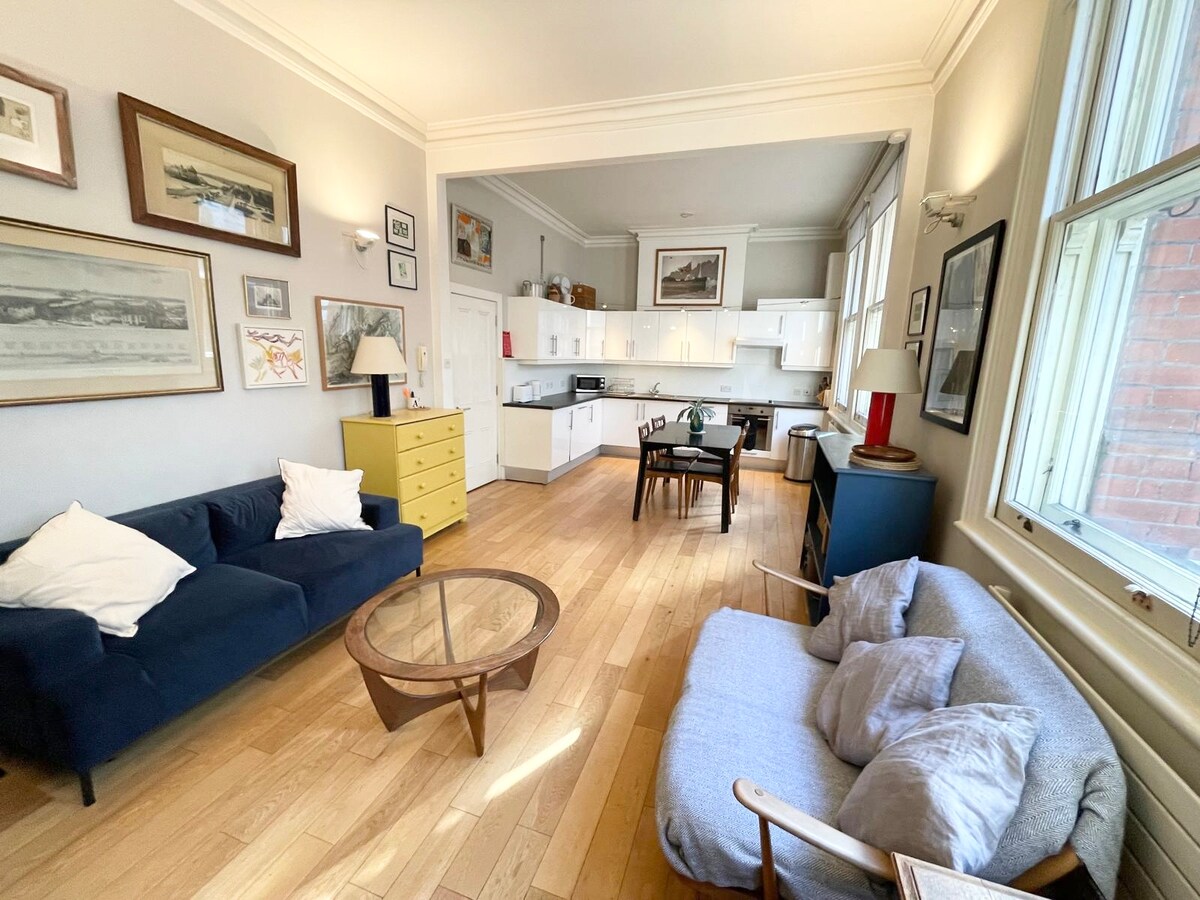 Um apartamento de época convertido em plano aberto situado nos dois últimos andares de uma casa georgiana, "Woodbridge House", que remonta à década de 1760. Com espaço para acomodar quatro hóspedes, é composto por um quarto principal muito espaçoso e um banheiro privativo com uma cama Super-King. O segundo quarto é pequeno e consiste em uma cama de casal padrão com uma pequena cômoda que é capaz de acomodar dois adultos ou crianças, se necessário. Localizado no centro do que se tornou um dos bairros mais elegantes e procurados do centro de Londres, com inúmeros restaurantes e bares de alta classe no bairro, bem como a uma curta distância a pé do melhor que Londres tem a oferecer. DESTAQUES DA ACOMODAÇÃO • Sala de estar em plano aberto • Localização fantástica • Comodidades de alta especificação • Espaçoso e luminoso QUARTOS Uma enorme sala de estar com lareira a gás e TV LED de 55 polegadas e cozinha cumprimenta você ao entrar no apartamento. Bela vista sobre alguns dos edifícios de época dentro desta área de conservação histórica, incluindo a torre do relógio da igreja. A COZINHA Cozinha de designer com todos os eletrodomésticos integrados, máquina de lavar louça, máquina de lavar roupa, micro-ondas embutido, fogão, fogão, geladeira de vinho (com garrafa de cortesia de tinto ou branco, avise-me sua preferência), torneira de água fervente instantânea. SALA DE ESTAR/JANTAR Uma mesa de jantar sob medida e recuperada acomoda 6 pessoas. O BANHEIRO PRINCIPAL Um banheiro contemporâneo fora do espaço principal com uma banheira/chuveiro, WC e pia. Todas as toalhas fornecidas. Artigos de higiene pessoal de cortesia fornecidos. QUARTO PRINCIPAL Localizado no último andar, quarto principal enorme com uma cama tamanho Super-King, armários embutidos com cofre. Todos os cabides fornecidos. BANHEIRO PRIVATIVO COM CHUVEIRO Banheiro com chuveiro de plano aberto no último andar SEGUNDO QUARTO Segundo quarto menor com uma cama de casal e uma pequena cômoda. Todo o apartamento é seu durante o período da sua estadia Eu moro muito perto e lhe darei todos os meus dados de contato para que possa ajudar você com qualquer coisa que você possa precisar durante sua estadia. O apartamento convertido fica nos dois andares superiores de uma casa georgiana em Clerkenwell. Clerkenwell é a Londres dos londrinos - uma comunidade criativa, no coração de Londres. Este apartamento elegante está aninhado entre os portões medievais da cidade, restaurantes com estrelas Michelin, pubs históricos e cafés epicuristas. O bairro onde o leste de Londres encontra o oeste de Londres, então escolha uma direção e logo você encontrará o Exmouth Market ou St Pauls, o Barbican ou o Museu Britânico ou os teatros do West End. Localizado a apenas 10 minutos a pé do Metrô de Farringdon localizado na Linha Circle, Linha District, Linha Hammersmith & City, bem como as linhas terrestres, Farringdon abre toda Londres para você. Tornando-se uma das maiores estações de Londres. Também linha direta para os aeroportos de Gatwick e Luton. A uma curta distância a pé de Covent Garden, West End, Soho, St Pauls, Museu Britânico, Oxford/Regent Street, Shoreditch. - Lareira a gás com controle remoto Designer - Porta de aço de segurança de alto nível - Totalmente aquecido centralmente - TV LED de 55 polegadas com leitor de DVD - Internet sem fio - Torneira de água fervente instantânea - Berço portátil disponível sob demanda - Limpeza final incluída na reserva. A limpeza durante a estadia está disponível (mediante taxa)