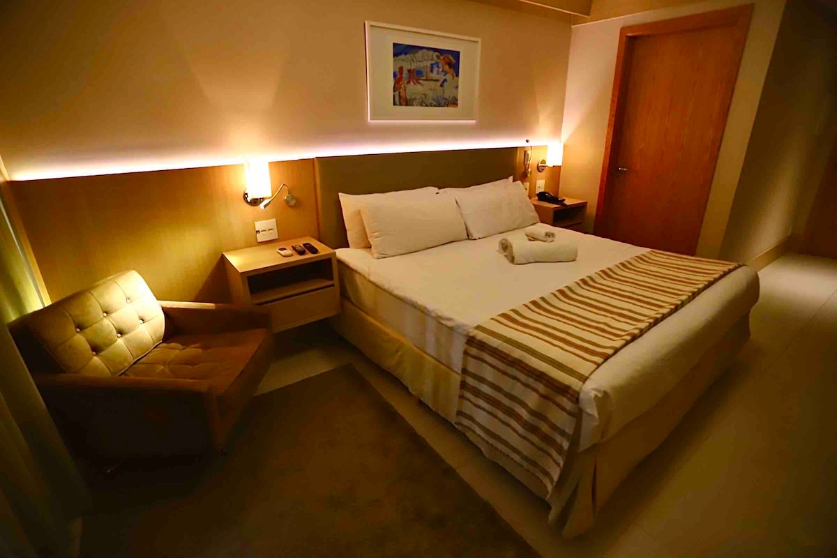 Aparthotel super confortável bem no centro de Brasília. Hotel com serviço de quarto diariamente, restaurante, piscina, academia, sauna, centro de convenções, shopping Brasília so atravessar a rua. A menos de 3 km. da esplanada dos ministérios, próximo aos principais pontos turísticos da cidade para trabalhar, descansar ou fazer turismo. Venha desfrutar da Capital Federal.