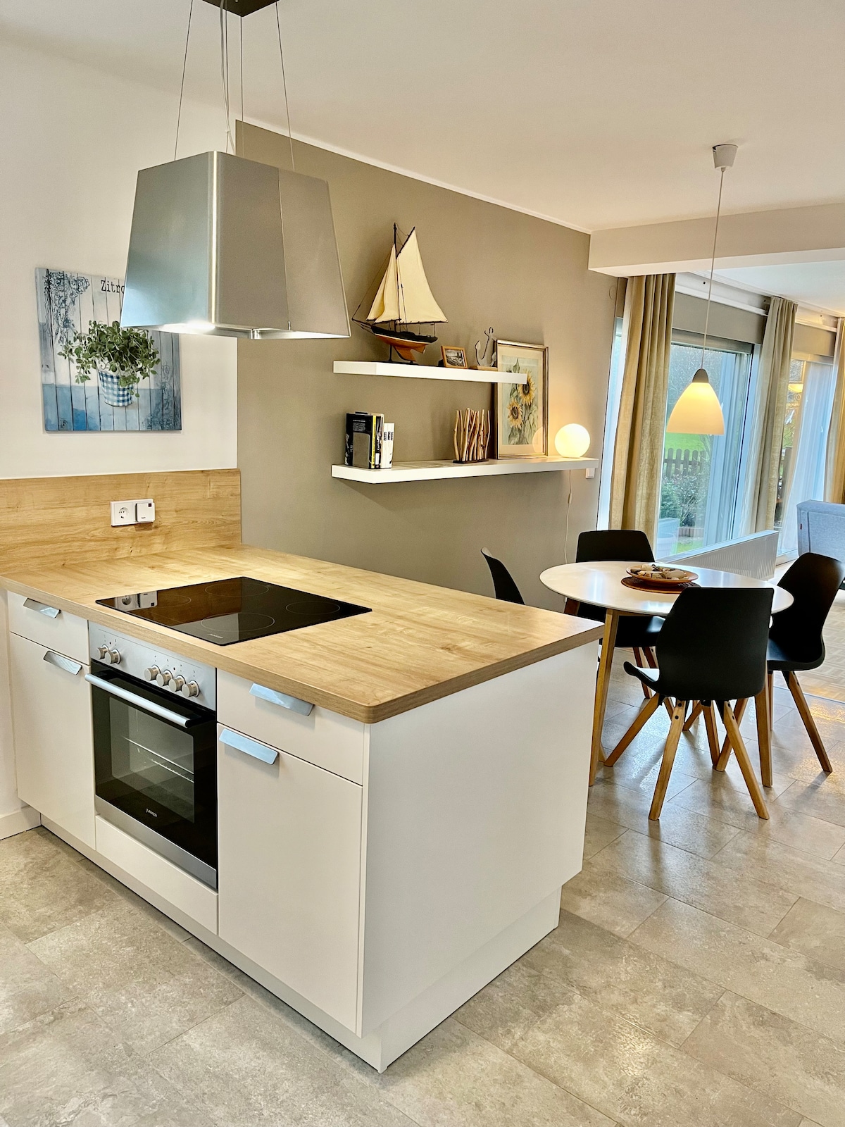 Moin und Herzlich Willkommen in unserer Wohnung in Dänschendorf auf Fehmarn. Kürzlich komplett renoviert lässt dieses Apartment in einem alten Kapitänshaus keine Wünsche offen. Auf 100m² habt ihr Platz für 6 Personen in 3 Schlafzimmern mit Doppelbetten. Abends vor dem Kamin, in der Fasssauna im Garten oder auf unserer Terrasse direkt am See könnt ihr nach einem ereignisreichen Tag entspannen. Für perfektes WiFi sorgt Internet über Glasfaser. Wir freuen uns auf Euch!