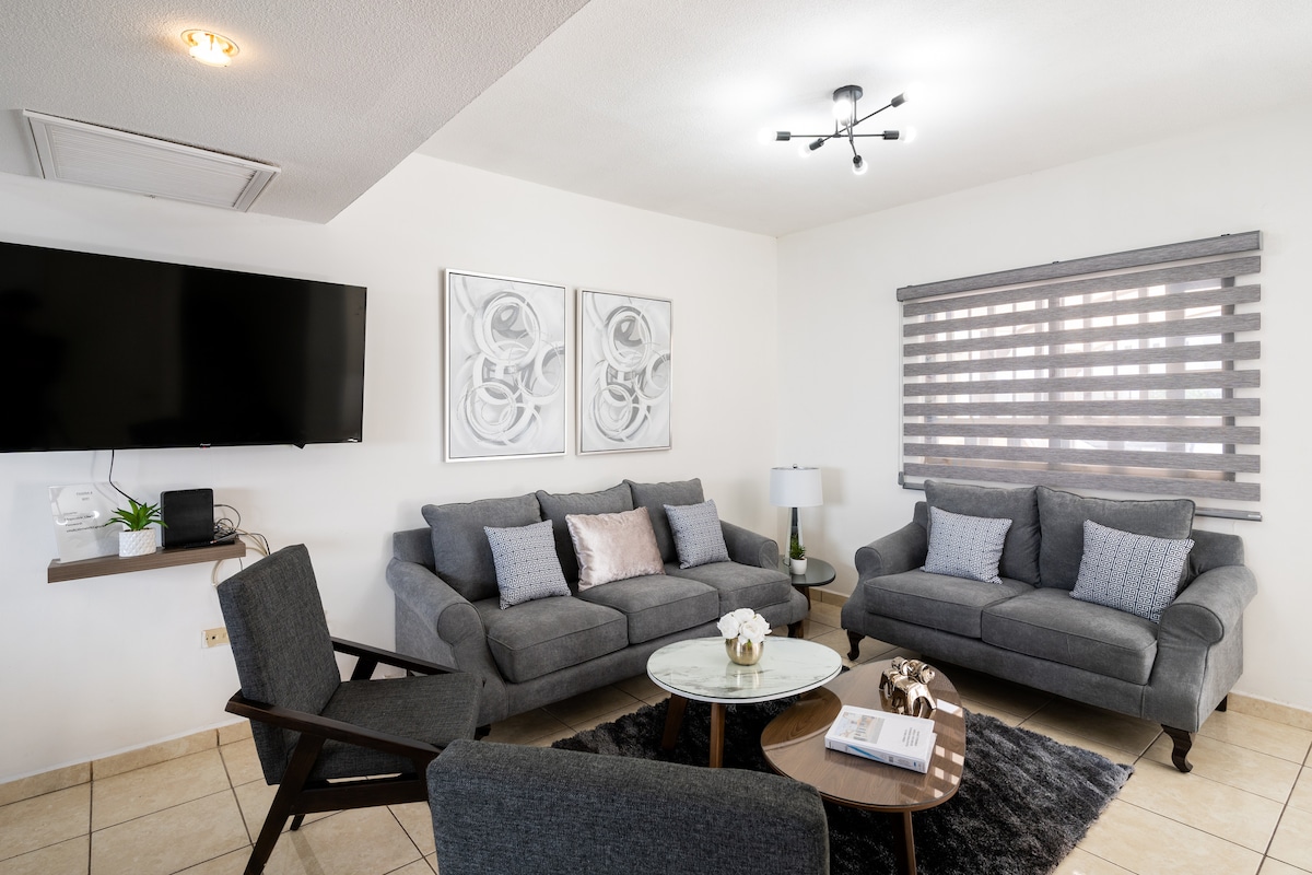 Esta acomodação única tem espaço suficiente para uma estadia tranquila com seus entes queridos. Projetado para o seu conforto com muito espaço e acessórios para se sentir em casa, com internet, tv, sofá-cama, uma estadia espaçosa e dois quartos. Perto de locais de interesse, como o Consulado Americano, Clube de Golfe e hospitais. Com supermercado na parte inferior, cafeteria, posto de gasolina e banco. Para estadias de mais de 5 noites, uma garrafa de vinho de boas-vindas é adicionada!