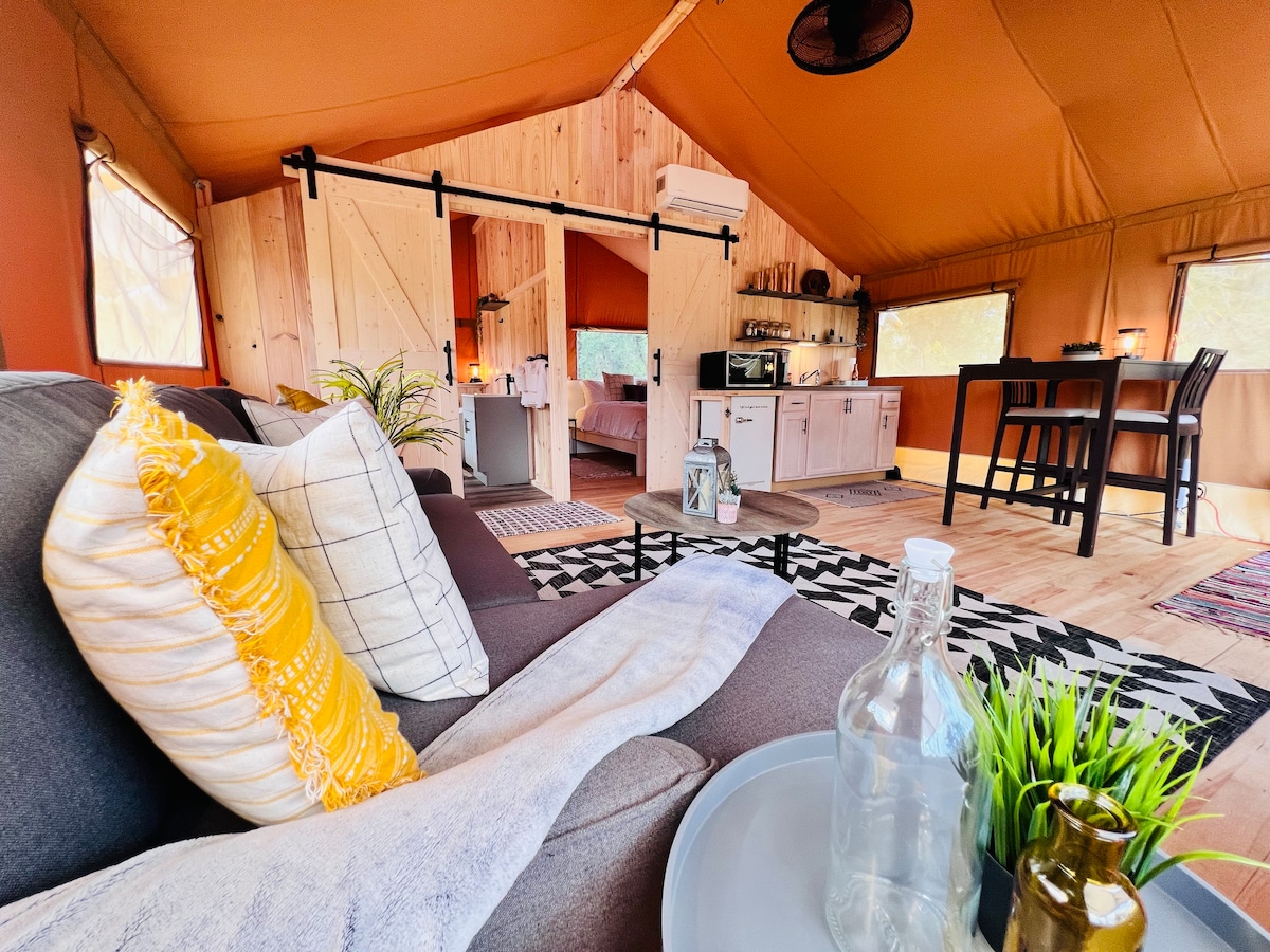 Templo e glamping com ar-condicionado sob um carvalho de 120 anos